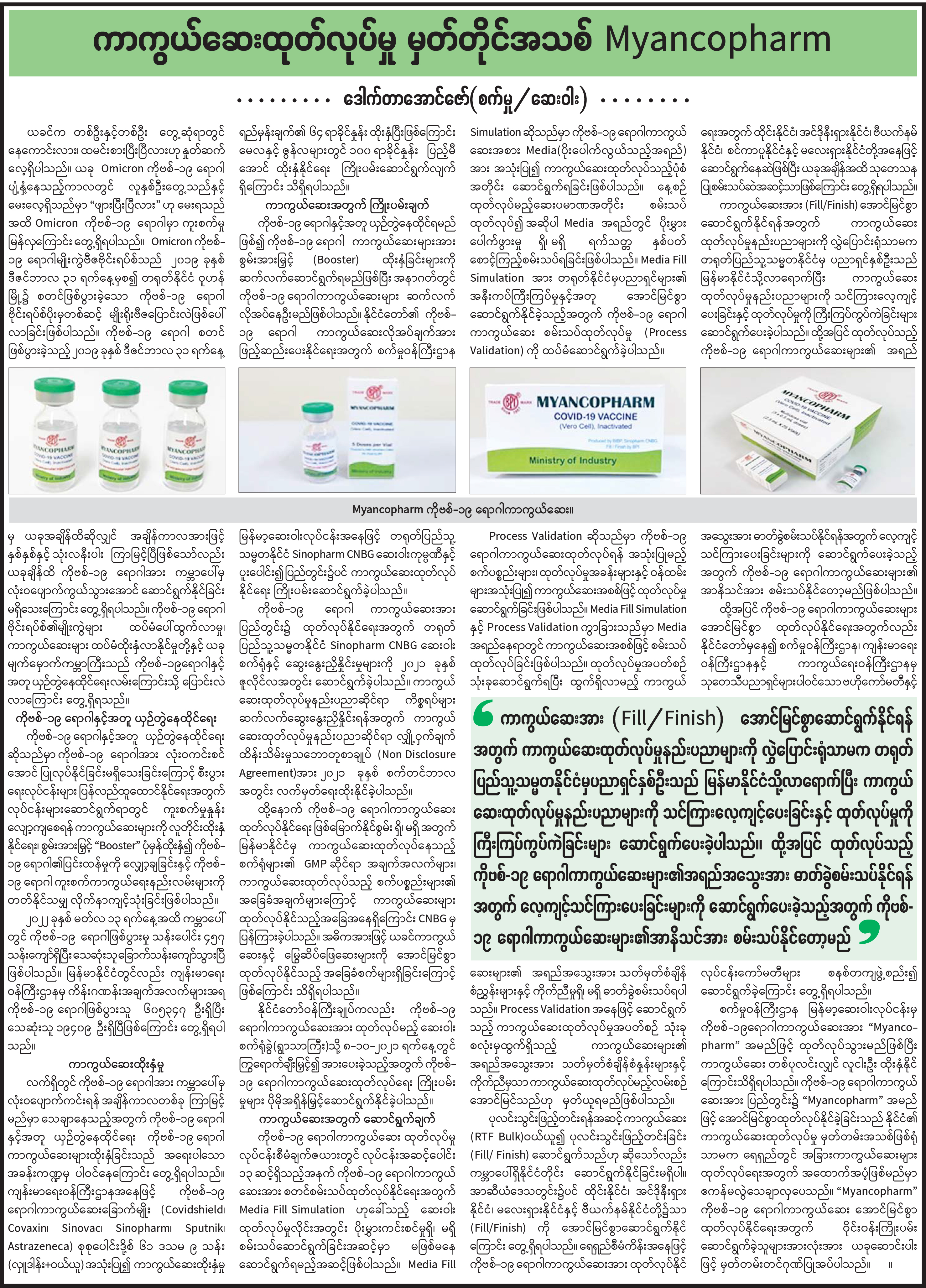 ကာကွယ်ဆေးထုတ်လုပ်မှု မှတ်တိုင်အသစ် Myancopharm