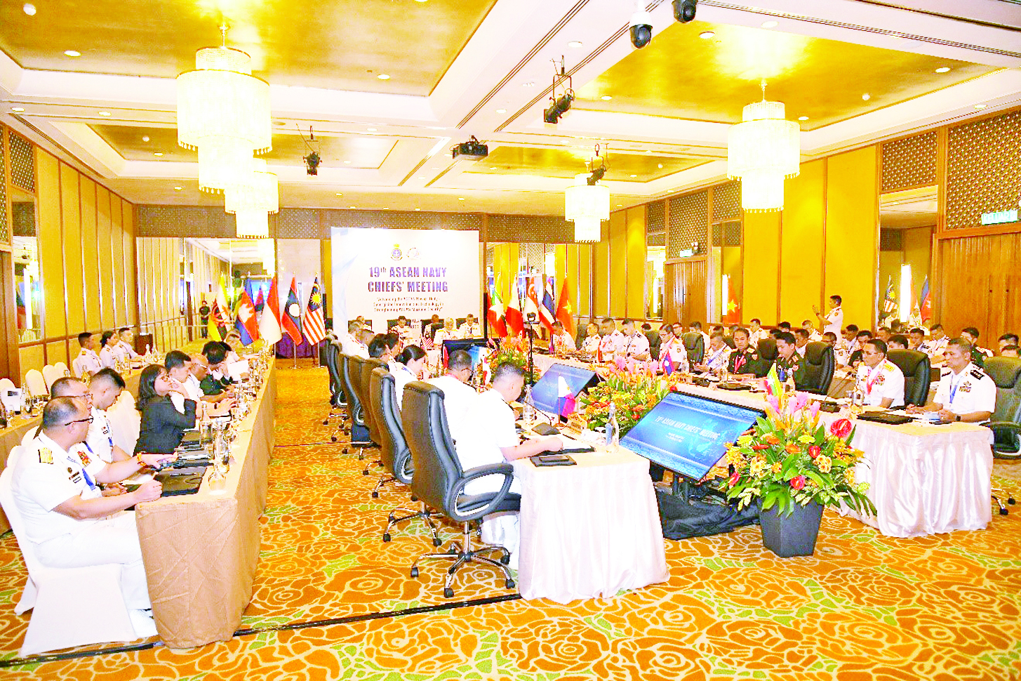 (၁၉)ကြိမ်မြောက် အာဆီယံရေတပ်ဦးစီးချုပ်များ အစည်းအဝေး (19th ASEAN Navy Chiefs’ Meeting – 19th ANCM) ကို ဩဂုတ် ၁၈ ရက်မှ ၂၁ ရက်အထိ မလေးရှားနိုင်ငံ ပီနန်မြို့၌ ကျင်းပရာ ကာကွယ်ရေးဦးစီးချုပ် (ရေ) ဗိုလ်ချုပ်ကြီးထိန်ဝင်း တက်ရောက်သည်။ ဦးစွာ မလေးရှားကာကွယ်ရေးဝန်ကြီး Mohamed Khaled Nordin က အဖွင့်နှုတ်ခွန်းဆက်စကား ပြောကြားပြီး အစည်းအဝေးကို ဖွင့်လှစ်ပေးသည်။ ယင်းနောက် ယခင်နှစ် (၁၈) ကြိမ်မြောက် အာဆီယံရေတပ်ဦးစီးချုပ်များ အစည်းအဝေးမှတ်တမ်းကို အတည်ပြုသည်။ ဆက်လက်၍ ANCM အမြဲတမ်းပူးတွဲအတွင်းဝန်က ဒေသတွင်း ပင်လယ်ရေကြောင်းလုံခြုံရေး အခြေအနေများကို အကျဉ်းချုပ်တင်ပြဆွေးနွေးကြသည်။ ထို့နောက် အစည်းအဝေး တက်ရောက်လာကြသော အာဆီယံရေတပ်ဦးစီးချုပ်များက အာဆီယံပင်လယ်ရေကြောင်း လုံခြုံရေးကို ပိုမိုခိုင်မာစေရန် နည်းပညာနှင့် ဆန်းသစ်တီထွင်မှုကို ပေါင်းစပ်၍ အာဆီယံရေတပ်များ၏ စည်းလုံးညီညွတ်မှုကို တိုးမြှင့်ဆောင်ရွက်ကြပါစို့ (Advancing the ASEAN Navies’ Unity-Synergising Innovation and Technology in Strengthening ASEAN Maritime Security) ခေါင်းစဉ်ကို နိုင်ငံအလိုက် အမြင်ချင်းဖလှယ်ဆွေးနွေးခဲ့ကြပြီး ကာကွယ်ရေးဦးစီးချုပ် (ရေ) ဗိုလ်ချုပ်ကြီးထိန်ဝင်းက ညီညွတ်မှုနှင့် ယုံကြည်မှု၏ တည်တံ့ခိုင်မြဲသော အရေးပါမှု၊ ဆန်းသစ်တီထွင်မှုနှင့် နည်းပညာကို လက်တွေ့ကျကျ အသုံးချမှု၊ ပင်လယ်ရေကြောင်း လုံခြုံရေးတိုးမြှင့်ရန် လက်တွေ့ကျသောလုပ်ဆောင်မှုများကို ဆွေးနွေးခဲ့သည်။ ယင်းနောက် သတင်းအချက်အလက် မျှဝေခြင်း၊ ဆွေးနွေးဖလှယ်ခြင်း အစီအစဉ်များနှင့် အနာဂတ်တွင် ဆောင်ရွက်မည့် ANCM အစီအစဉ်များကို ဆက်လက်ဆွေးနွေးခဲ့ကြသည်။ ယင်းနောက် သဘာပတိမလေးရှားရေတပ်ဦးစီးချုပ်က နိဂုံးချုပ် အမှာစကားပြောကြားကာ အစည်းအဝေးကို ရုပ်သိမ်းခဲ့သည်။ အစည်းအဝေးအပြီးတွင် ကာကွယ်ရေးဦးစီးချုပ် (ရေ) သည် မလေးရှားရေတပ်ဦးစီးချုပ်၊ ဗီယက်နမ်ရေတပ်ဦးစီးချုပ်၊ ထိုင်းရေတပ်ဦးစီးချုပ်၊ ကမ္ဘောဒီးယားရေတပ်ဦးစီးချုပ်နှင့် လာအိုကြည်းတပ်စစ်ဦးစီးဌာန ဒုတိယအကြီးအကဲတို့ကို သီးခြားစီတွေ့ဆုံခဲ့ပြီး နှစ်နိုင်ငံရေတပ်ဆိုင်ရာ ပူးပေါင်းဆောင်ရွက်နိုင်မှုများကို ရင်းနှီးပွင့်လင်းစွာ အမြင်ချင်းဖလှယ်ဆွေးနွေးခဲ့ကြသည်။
