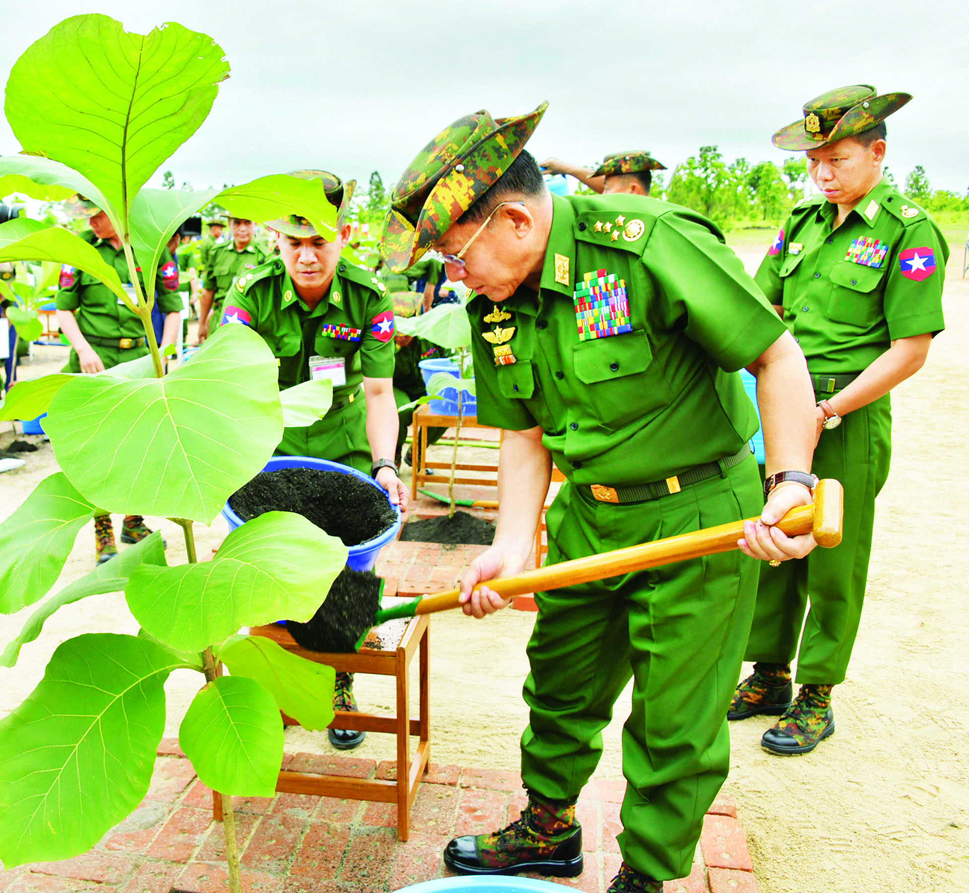 သဘာဝပတ်ဝန်းကျင်အား ထိန်းသိမ်းနိုင်စေရန်နှင့် ရာသီဥတုကို အထောက်အကူဖြစ်စေရန်၊ အရိပ် အာဝါသရရှိစေရန်၊ နိုင်ငံ့စီးပွားရေးအတွက် တစ်ဖက်တစ်လမ်းမှ အထောက်အကူဖြစ်စေရန် ရည်ရွယ်၍ ကာကွယ်ရေးဦးစီးချုပ်ရုံး(ကြည်း၊ ရေ၊ လေ) မိသားစုများနှင့် တိုင်းစစ် ဌာနချုပ် အသီးသီးတို့တွင် ၂၀၁၁ ခုနှစ်မှစ၍ နှစ်စဉ် မိုးရာသီတစ်အုပ်တစ်မ သစ်ပင်စိုက်ပျိုးပွဲများ ကျင်းပ ပြုလုပ်လျက်ရှိသည်။