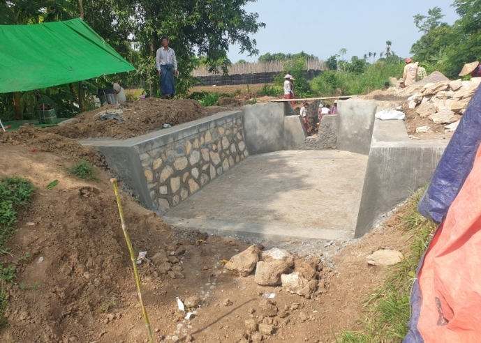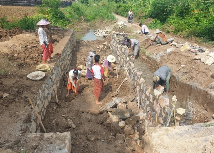 မန္တလေးတိုင်းဒေသကြီး၊ ကျောက်ဆည်ခရိုင်၊ ကျောက်ဆည်မြို့နယ်တွင် သီးနှံမျိုးစုံ ၂၆၃ ဧက စိုက်ပျိုးရေ ပြည့်ဝစွာပေးဝေနိုင်ရေး ကဒူးမြောင်းမှ ရေကျအဆောက်အအုံ တစ်ခုအား ဆည်မြောင်းနှင့် ရေအသုံးချမှု စီမံခန့်ခွဲရေးဦးစီးဌာနမှ ၂၀၂၃-၂၀၂၄ ဘဏ္ဍာနှစ်တွင် ပြန်လည်ပြုပြင်ပေးလျက်ရှိသည်။