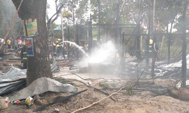 မီးလောင်ရာသို့ ကျောက်ဆည်ခရိုင် မီးသတ်ဦးစီးဌာနမှ လက်ထောက်ညွှန်ကြားရေးမှူး ဦးဇင်ထွန်း ဦးဆောင်သည့် တပ်ဖွဲ့ဝင်(၁၅)ဦးတို့သည် မီးငြိမ်းသတ်ယာဉ်(၂)စီး၊ DCP 2 kg(၃)ဘူးနှင့် ကျေးရွာပြည်သူများဖြင့် အတူ ဝိုင်းဝန် ငြှိမ်းသတ်ခဲ့ကြောင်းနှင့် မီးလောင်မှုကြောင့် ပေ(၂၀x၁၅) သွပ်မိုး၊ ထရံကာ၊ မြေစိုက်လူနေတဲအိမ် (၁)လုံး၊ (၁၀x၁၀)သွပ်မိုး ထရံကာ၊ပျဉ်ခင်း၊မြေစိုက်လူနေတဲအိမ်(၁)လုံး၊ (၁၀x၁၀)ပေသွပ်မိုး၊ ထရံကာ၊ ဝါးခင်းမြေစိုက်တဲအိမ် (၁)လုံး၊ (၅x၅)ပေသွပ်မိုး၊ ထရံကာ၊ မြေစိုက်လူနေတဲအိမ်(၁)လုံး မီးလောင်ကျွမ်းခဲ့ကြောင်း သိရှိရသည်။