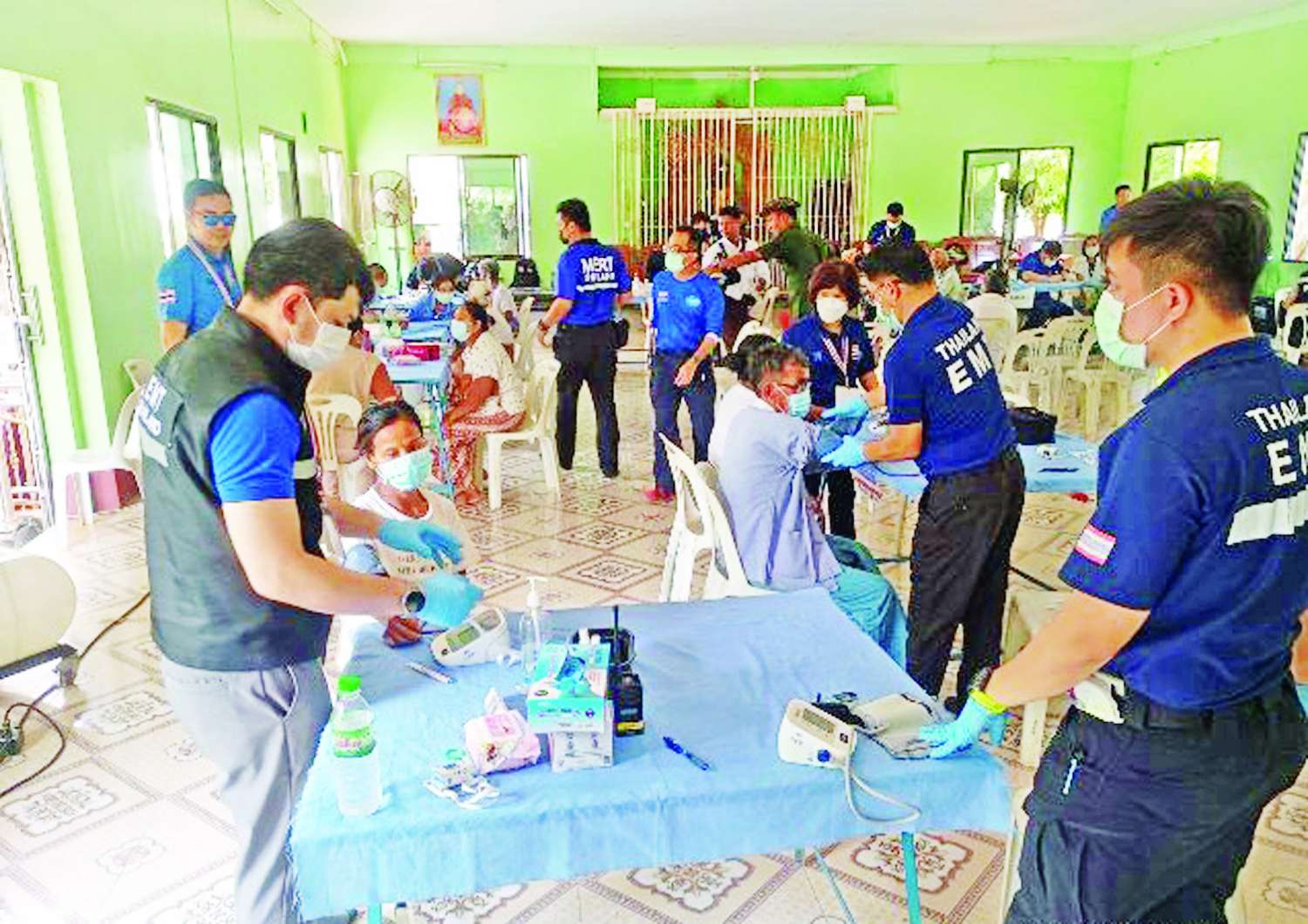 ထိုသို့ဆေးဝါးများ ကုသပေးရာတွင် ဒုတိယဗိုလ်ချုပ်ကြီးမျိုးသန့်နိုင်၊ မြို့နယ်စီမံအုပ်ချုပ်ရေးအဖွဲ့ဥက္ကဋ္ဌ ဦးဇော်လင်းထွန်းနှင့် အဖွဲ့ဝင်များက ငလျင်ဘေးသင့်ပြည်သူ ၃၃၂ ဦးအား ဆေးကုသနေမှုများကို လှည့်လည်ကြည့်ရှုပြီး ထိုင်းတော်ဝင်လေတပ်အား အမှတ်တရလက်ဆောင်ပစ္စည်းများပေးအပ်ခဲ့ကြောင်းနှင့် ငလျင်ဘေးသင့်ပြည်သူများအား ဧပြီ ၃၀ ရက်အထိ ဆေးဝါးများဆက်လက်ကုသပေးမည်ဖြစ်ကြောင်း သိရသည်။