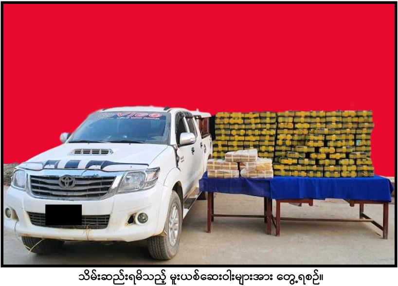 အလားတူ ယင်းနေ့ ညနေ ၅ နာရီခွဲက မူးယစ်ဆေးဝါး တားဆီးနှိမ်နင်းရေးရဲတပ်ဖွဲ့မှ တပ်ဖွဲ့ဝင်များပါဝင်သော ပူးပေါင်းအဖွဲ့သည် တာချီလိတ်မြို့၊ ပုန်းထွန်းရပ်ကွက်၊ အမှတ်(၂)လမ်းနှင့် ပိတောက်လမ်းထောင့်တွင် လီးဟားမောင်းနှင်လာသည့် PAJERO IO အမျိုးအစားမော်တော်ယာဉ်ကို ရပ်တန့်ရှာဖွေရာ အိုက်စ် ၂ ဒသမ ၃၈ ကီလို၊ လက်ကိုင်ဖုန်းတစ်လုံးတို့ကို သိမ်းဆည်းရမိခဲ့သဖြင့် ၎င်းတို့အား မူးယစ်ဆေးဝါးနှင့် စိတ်ကိုပြောင်းလဲစေသော ဆေးဝါးများဆိုင်ရာဥပဒေအရ အရေးယူထားကြောင်း သိရသည်။