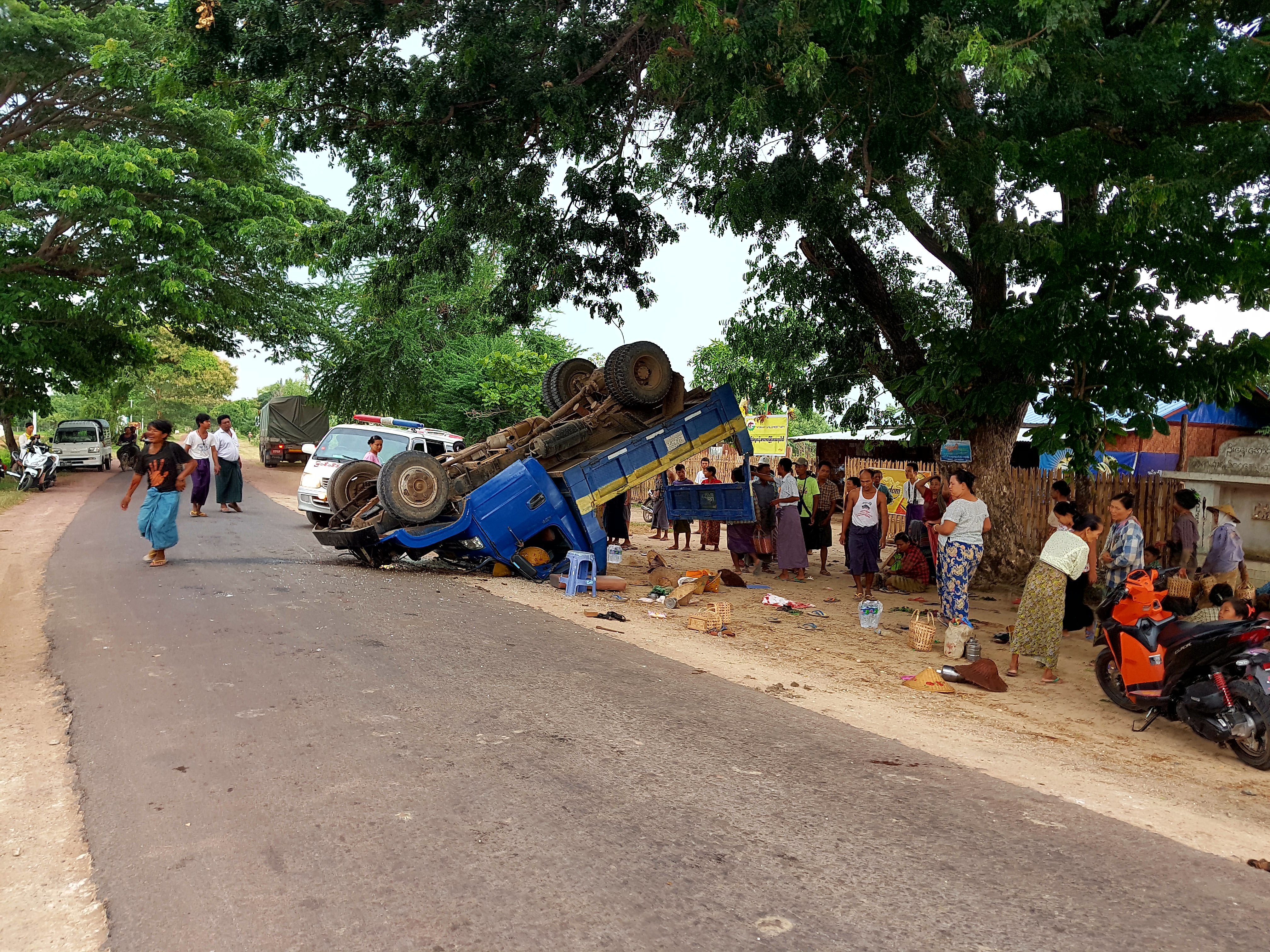 စစ်ကိုင်းတိုင်းဒေသကြီး၊ ရွှေဘိုခရိုင်၊ ခင်ဦးမြို့နယ်၌ ကောက်စိုက်ရာမှပြန်လာသည့် ကောက်စိုက်သမ အမျိုးသမီး ၃၀ တင်ဆောင်လာသော ယာဉ်တစ်စီးတိမ်းမှောက်ရာ ၁ ဦးသေဆုံးပြီး ၂၇ ဦး ဒဏ်ရာရရှိကြောင်း မြို့မရဲစခန်းမှ သိရသည်။