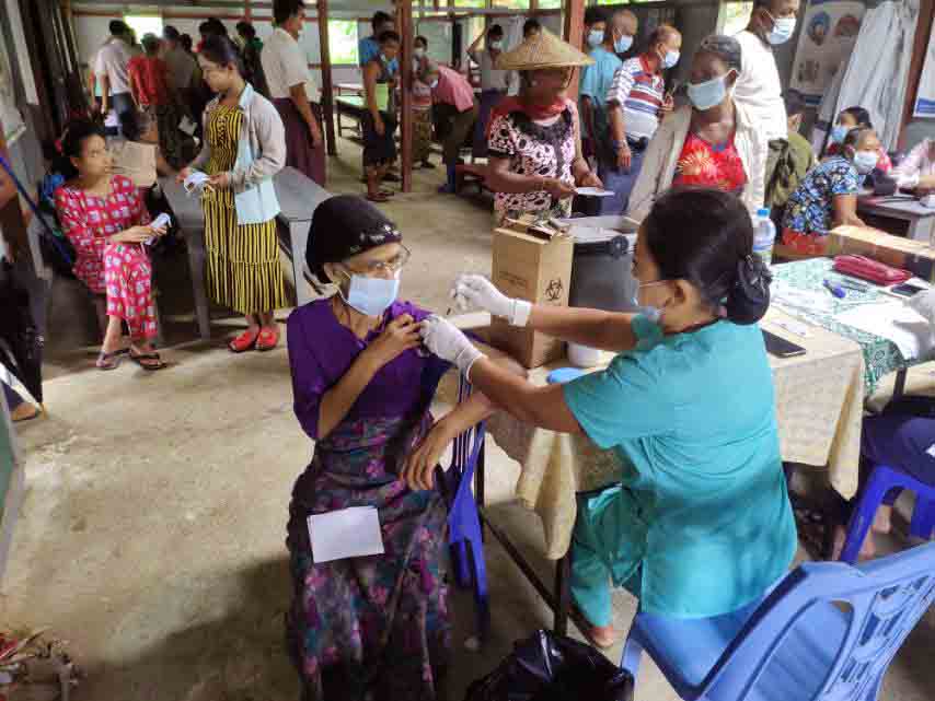 ရခိုင်ပြည်နယ်၊ ကျောက်ဖြူမြို့၊ ကျောက်တစ်လုံး IDPs စခန်းတွင် ခိုလှုံနေသူများကို ဇူလိုင်(၁၆)ရက် နေ့ နံနက်ပိုင်းက ကျန်းမာရေးဌာနမှ ဝန်ထမ်းများက အဆိုပါခိုလှုံရာစခန်းသို့သွားရောက်၍ ကိုဗစ်-၁၉ ရောဂါကာကွယ်ဆေး ပထမအကြိမ်ထိုးနှံပေးခြင်း၊ ထပ်ဆောင်းကာကွယ်ဆေး မထိုးနှံရသေးသည့်သူ များအား ထပ်ဆောင်းကာကွယ်ဆေး Booster Dose ထိုးနှံပေးခြင်းများ ကွင်းဆင်းဆောင်ရွက်ခဲ့ကြောင်း သိရသည်။