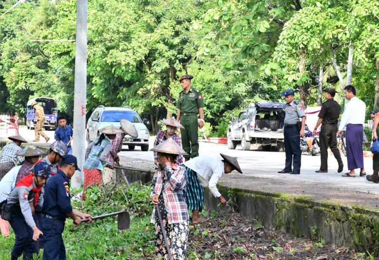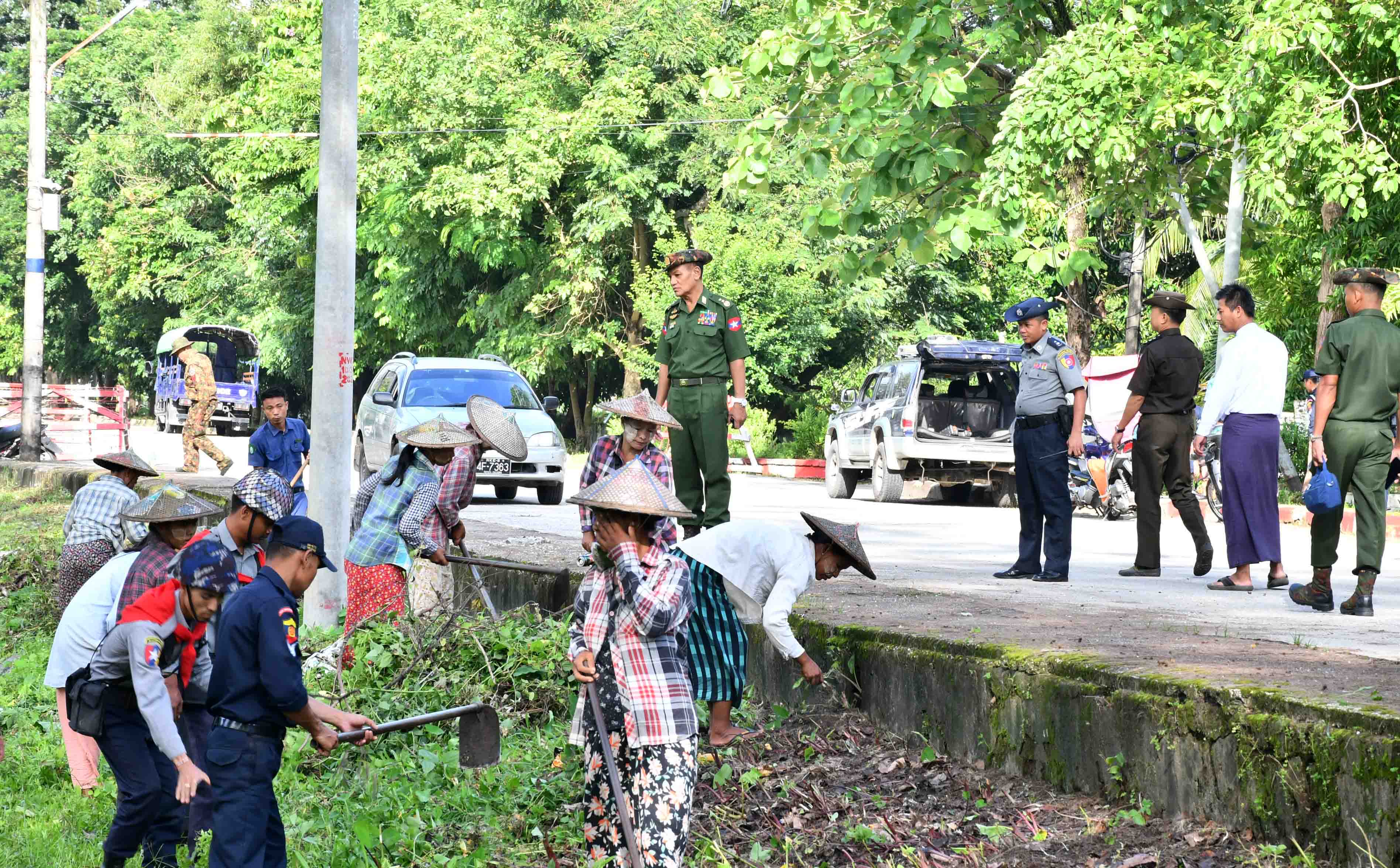 ထို့နောက် ဒုတိယဗိုလ်ချုပ်ကြီးလူအေးနှင့်အဖွဲ့သည် ကျောက်ဖြူမြို့၊ အစိုးရရပ်ကွက်သို့ ရောက်ရှိပြီး လေဆိပ်မှ မြို့အဝင်လမ်း လမ်းဘေး ဝဲ/ယာ တစ်လျှောက်ရှိ ခြုံနွယ်၊ ပေါင်းပင်၊ မြက်ပင်များ၊ လမ်းမပေါ်သို့ကျရောက်နေသည့် သစ်ပင်၊ သစ်ကိုင်းများ၊ တယ်လီဖုန်းကြိုးများ၊ လျှပ်စစ်မီးကြိုးများနှင့် မလွတ်သည့် သစ်ပင်၊ သစ်ကိုင်းများကို ကျောက်ဖြူတပ်နယ်မှ အရာရှိ၊ စစ်သည်များ၊ မြန်မာနိုင်ငံရဲတပ်ဖွဲ့ဝင်များ၊ မီးသတ်တပ်ဖွဲ့ ဝင်များနှင့် မြို့နယ်စည်ပင်သာယာရေးအဖွဲ့မှ ဝန်ထမ်းများ စုပေါင်းသန့်ရှင်းရေး ပြုလုပ်နေမှုကို ကြည့်ရှုအားပေးခဲ့ကြောင်း သိရသည်။