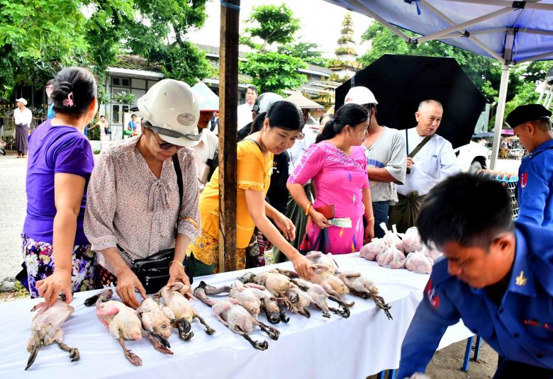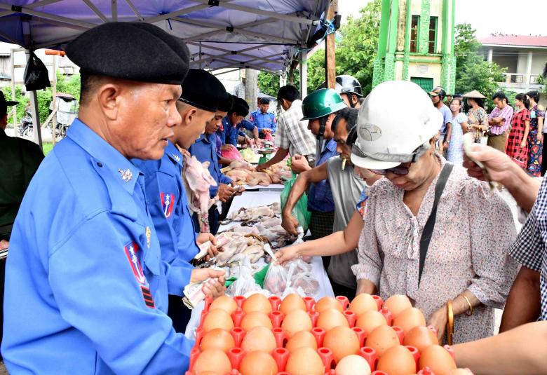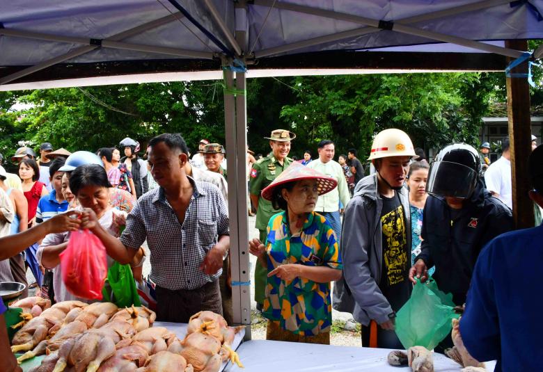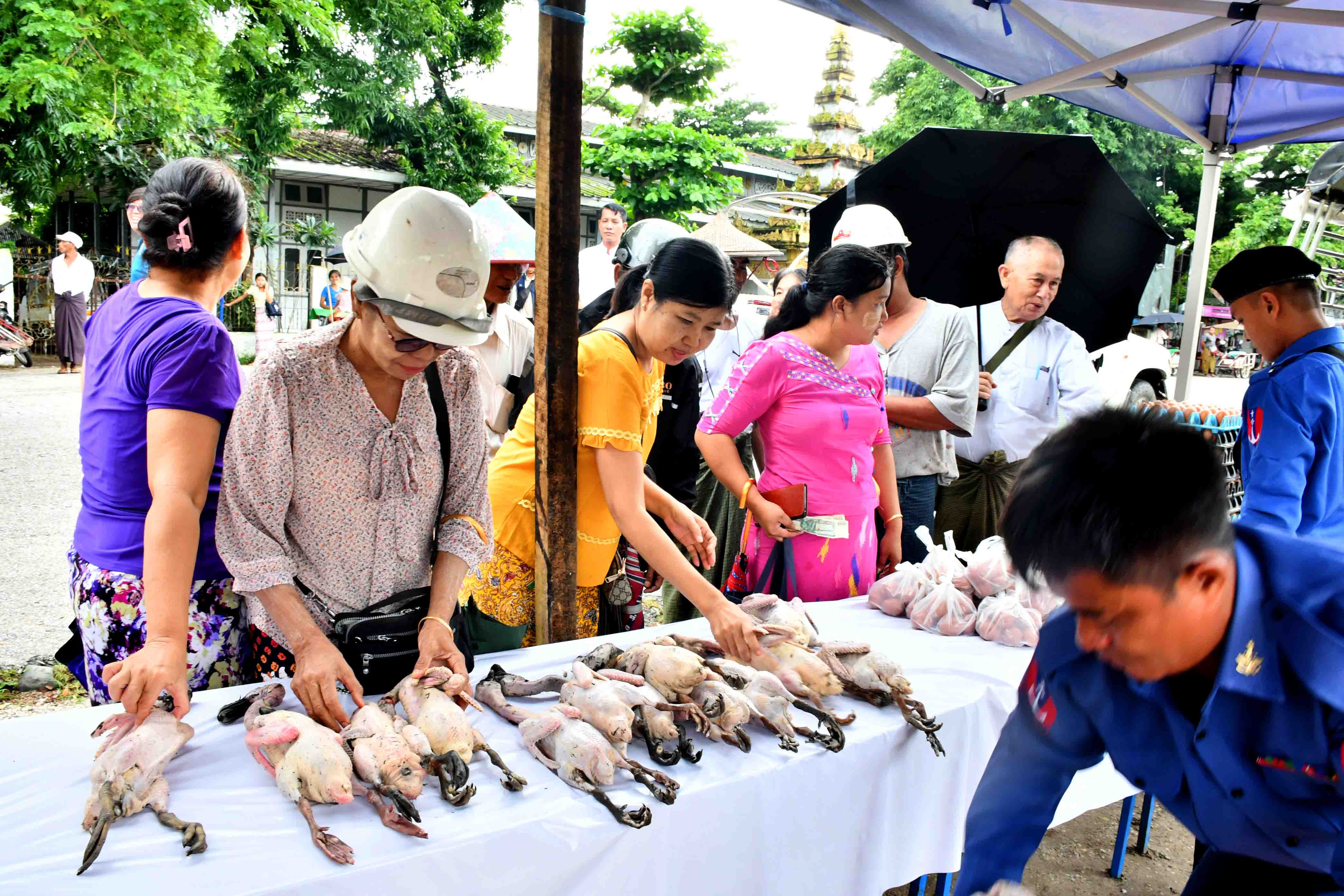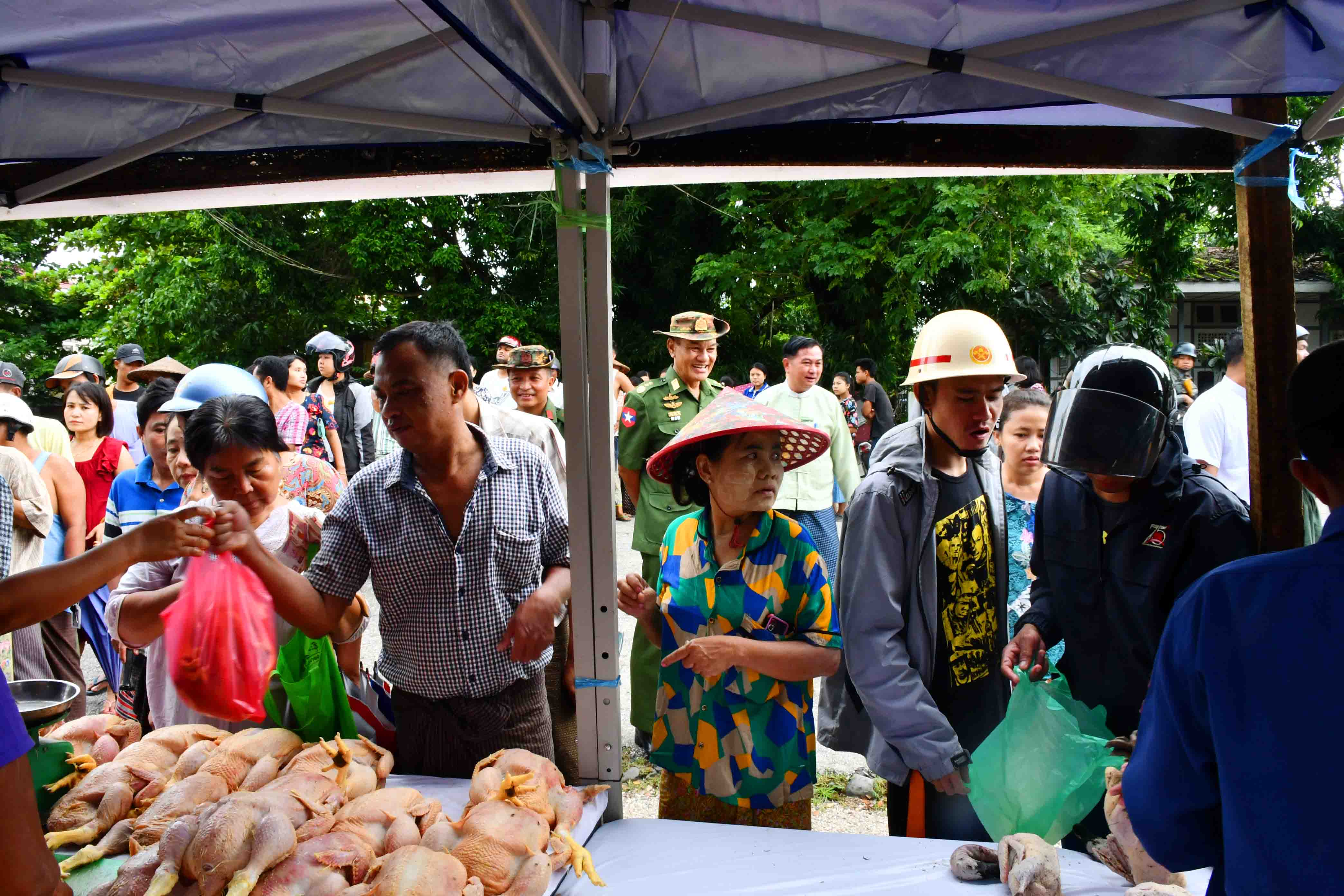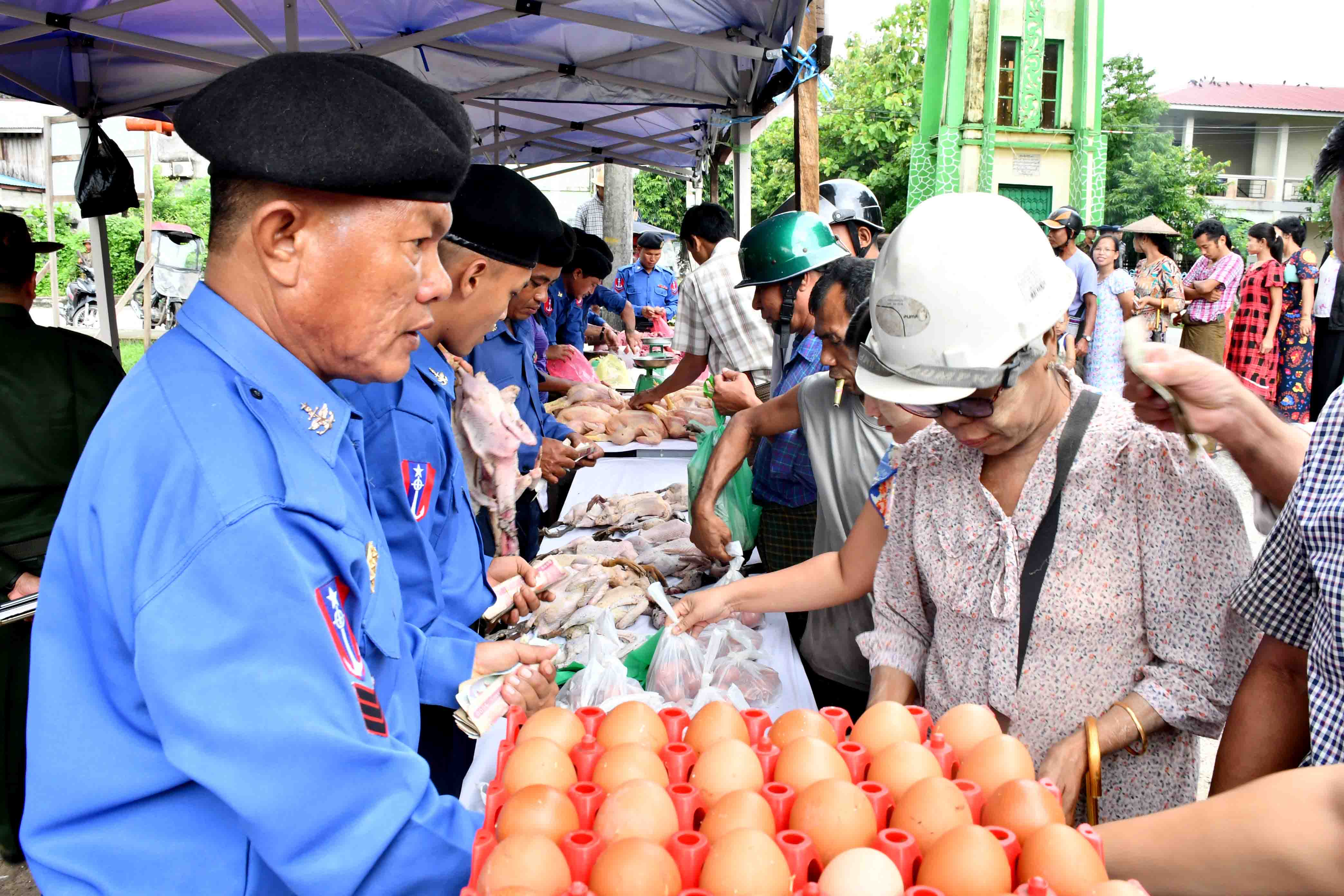 ရခိုင်ပြည်နယ်၊ ကျောက်ဖြူမြို့ရှိ ဒေသခံပြည်သူများအား ဝက်သား၊ ကြက်သား၊ ဘဲသားနှင့် ကြက်ဥများအား ဇူလိုင် ၁၃ ရက် နံနက်ပိုင်းက ဈေးနှုန်းသက်သာစွာဖြင့် ရောင်းချပေးခဲ့သည်။