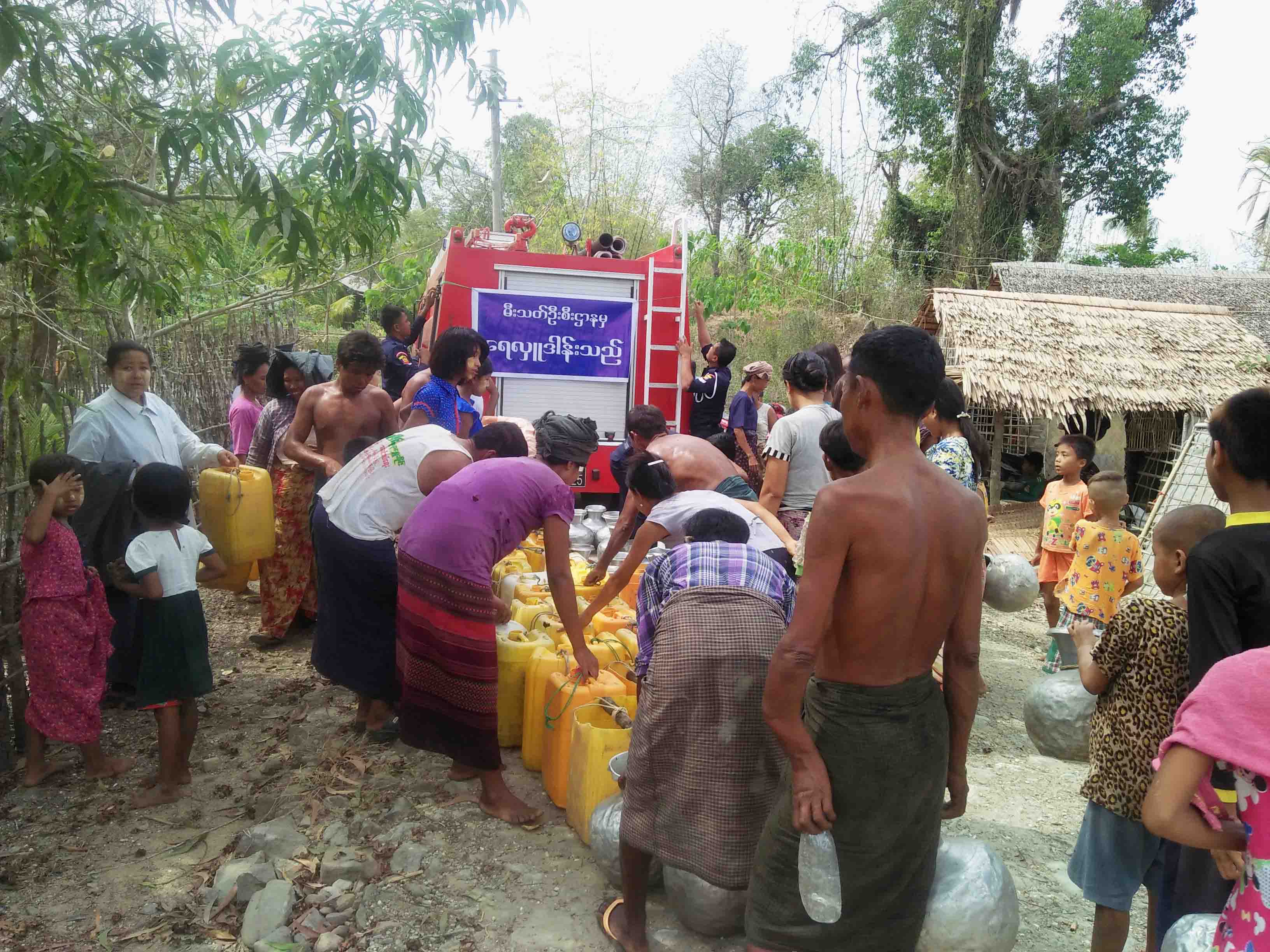 ထိုသို့သွားရောက်လှူဒါန်းရာတွင် ရေသန့်ဘူးကြီးအလုံး(၃၀)နှင့်မီးသတ်ရေယာဉ် နှစ်စီး၊ ရေဂါလန် (၂၄၀ဝ) အား ငလပွေ့ကျေးရွာ၊ ငလပွေ့ရွာသစ်ရှိ လူဦးရေ(၁၂၀)ဦးအား သန့်ရှင်းသော သောက်သုံးရေများ လှူဒါန်းခဲ့သည်။ ခရိုင်မီးသတ်ဦးစီးဌာနမှ မေ ၁၂ ရက်နေ့တွင် ကျောက်ဖြူမြို့နယ်၊ ကပ်သပြေကျေးရွာ သို့သွားရောက်ပြီး မီးသတ်ရေယာဉ်တစ်စီးဖြင့် သန့်ရှင်းသော သောက်သုံးရေများဖြန့်ဝေပေးခဲ့ကြသည်။ ရေရှားပါးသောကျေးရွာများသို့သွားရောက်ကာ ဆက်လက် ရေလှူဒါန်းပေးသွားမည်ဖြစ်ကြောင်း မြို့နယ် ဦးစီးမှူးထံမှသိရသည်။