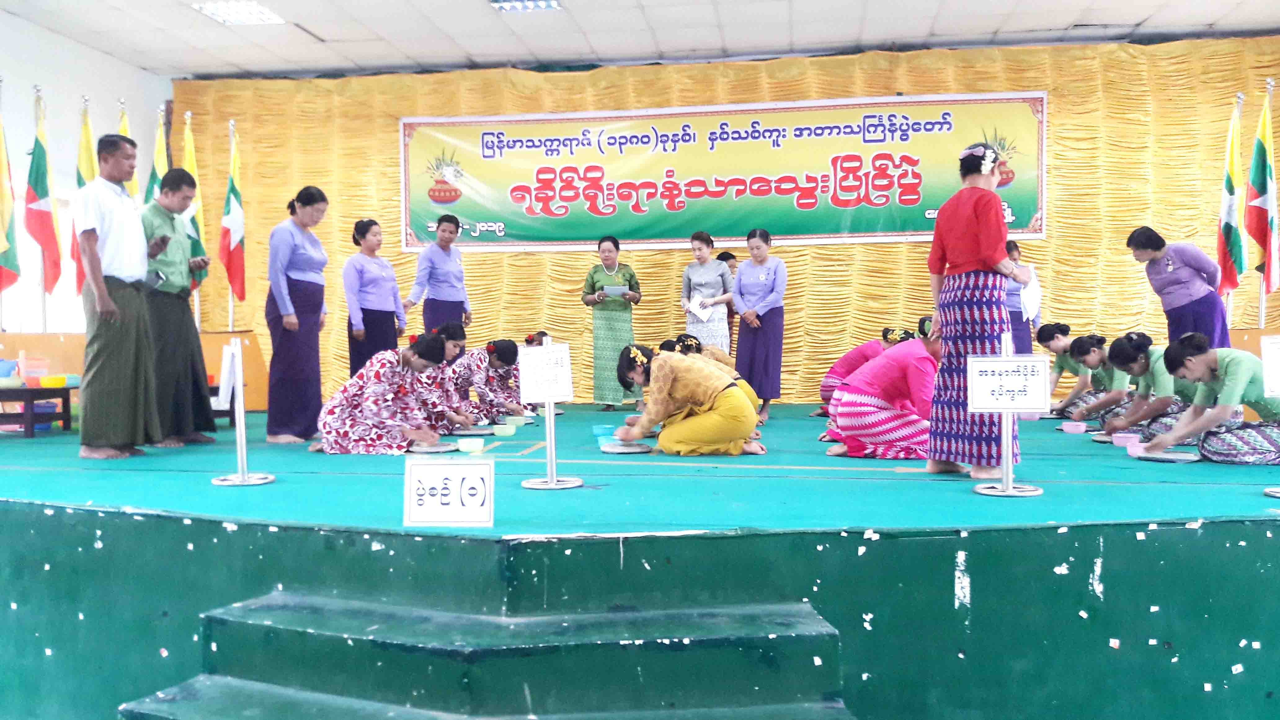 ရခိုင်ပြည်နယ် ကျောက်ဖြူမြို့ ရမ္မာဝတီခန်းမ၌ ယနေ့ နံနက် ၈ နာရီက ရခိုင်ရိုးရာ နံ့သာသွေးပြိုင်ပွဲကို ကျင်းပရာ ကျောက်ဖြူခရိုင် စီမံခန့်ခွဲမှုကော်မတီ ဥက္ကဋ္ဌ ဦးသန်းထွဋ်ဦးနှင့် ခရိုင်/မြို့နယ်အဆင့် ဌာနဆိုင်ရာအကြီးအကဲများ၊ အမျိုးသမီးရေးရာနှင့် မိခင်နှင့်ကလေး စောင့်ရှောက်ရေးအဖွဲ့ဝင်များ၊ ရပ်ကွက်အုပ်ချုပ်ရေးမှူးများနှင့် ရပ်ကွက်အလိုက် ပြိုင်ပွဲဝင်များ တက်ရောက်ခဲ့ကြသည်။