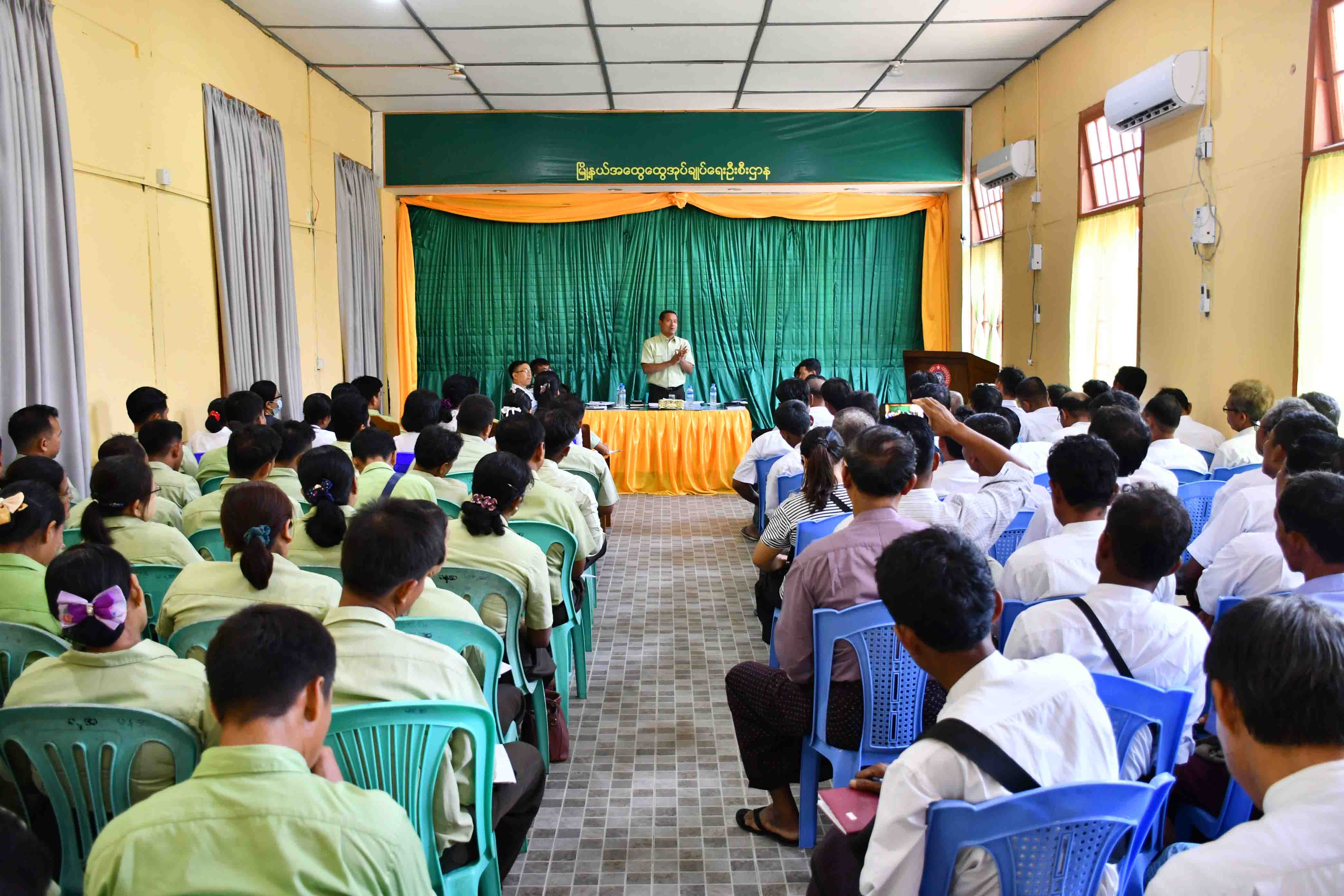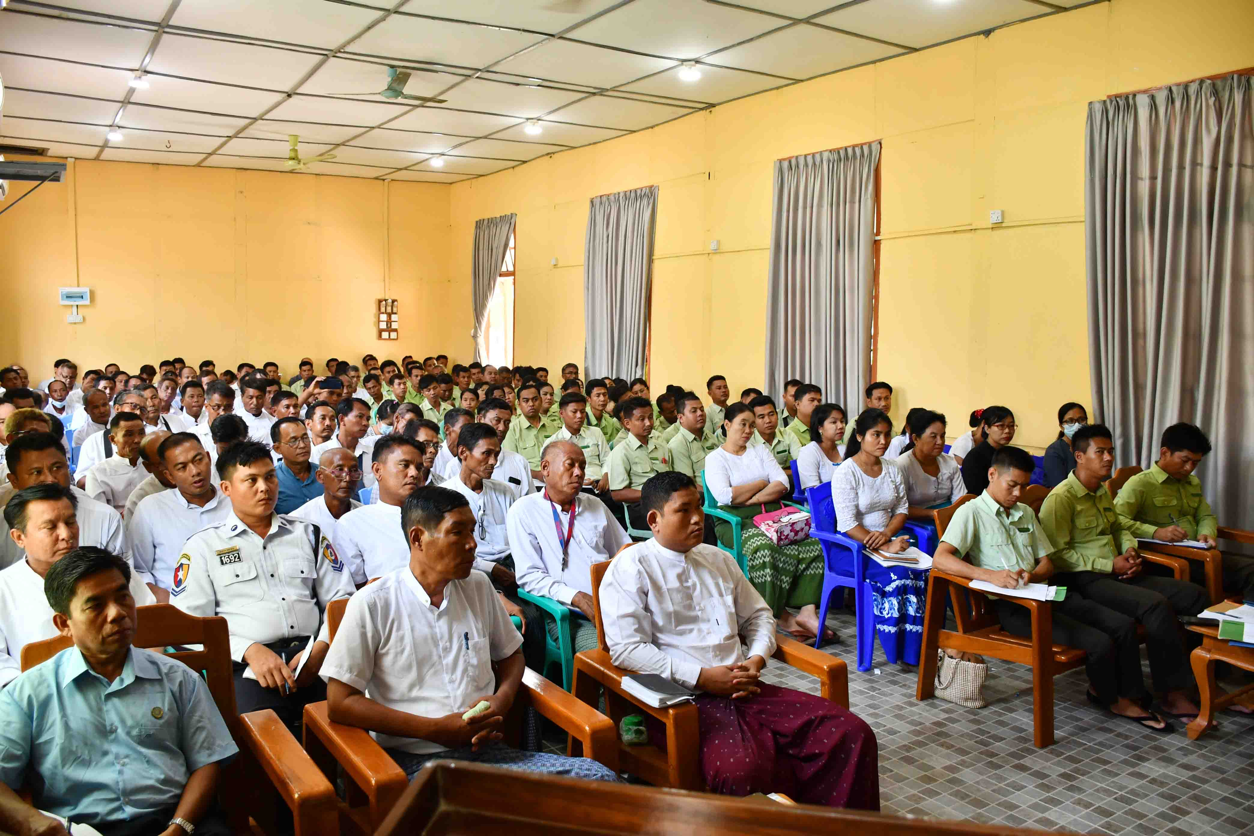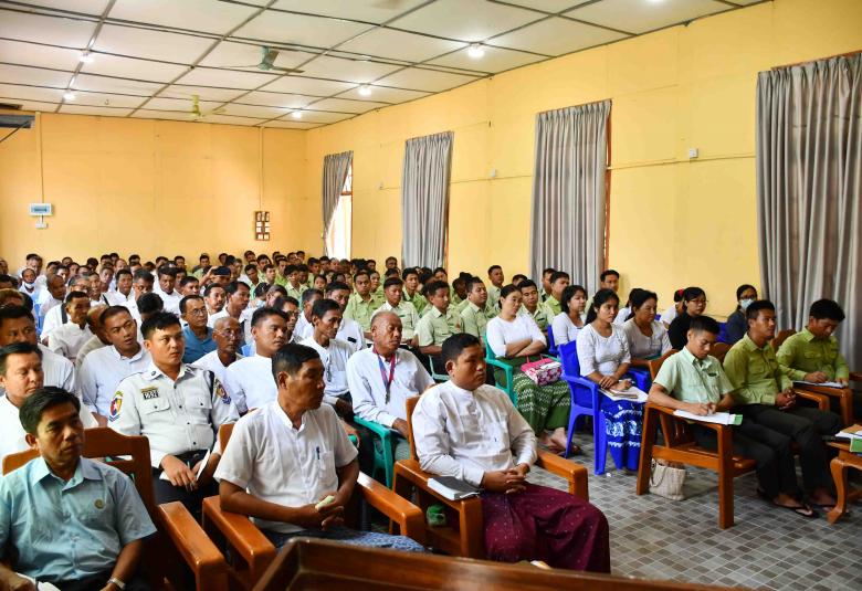 ရခိုင်ပြည်နယ်၊ ကျောက်ဖြူမြို့၌ သဘာဝဘေးအန္တရာယ်ဆိုင်ရာများနှင့် ရင်ဆိုင်ကြုံတွေ့လာပါက အရေးပေါ်ကူညီမှုများ တုန့်ပြန်ဆောင်ရွက်နိုင်ရန်အတွက် မြို့နယ်သဘာဝဘေးအန္တရာယ်ဆိုင်ရာ စီမံခန့်ခွဲရေး ကော်မတီဝင်များနှင့် ရပ်ကွက်/ကျေးရွာစာရေးများ၊ ရပ်ကွက်/ကျေးရွာ အုပ်ချုပ်ရေးမှူးများ၏ ညှိနှိုင်းအစည်းအဝေးကို ယမန်နေ့ မွန်းတည့် ၁၂ နာရီက မြို့နယ်အထွေထွေအုပ်ချုပ်ရေးဦးစီးဌာနရုံး အစည်းအဝေးခန်းမ၌ ကျင်းပပြုလုပ်သည်။
