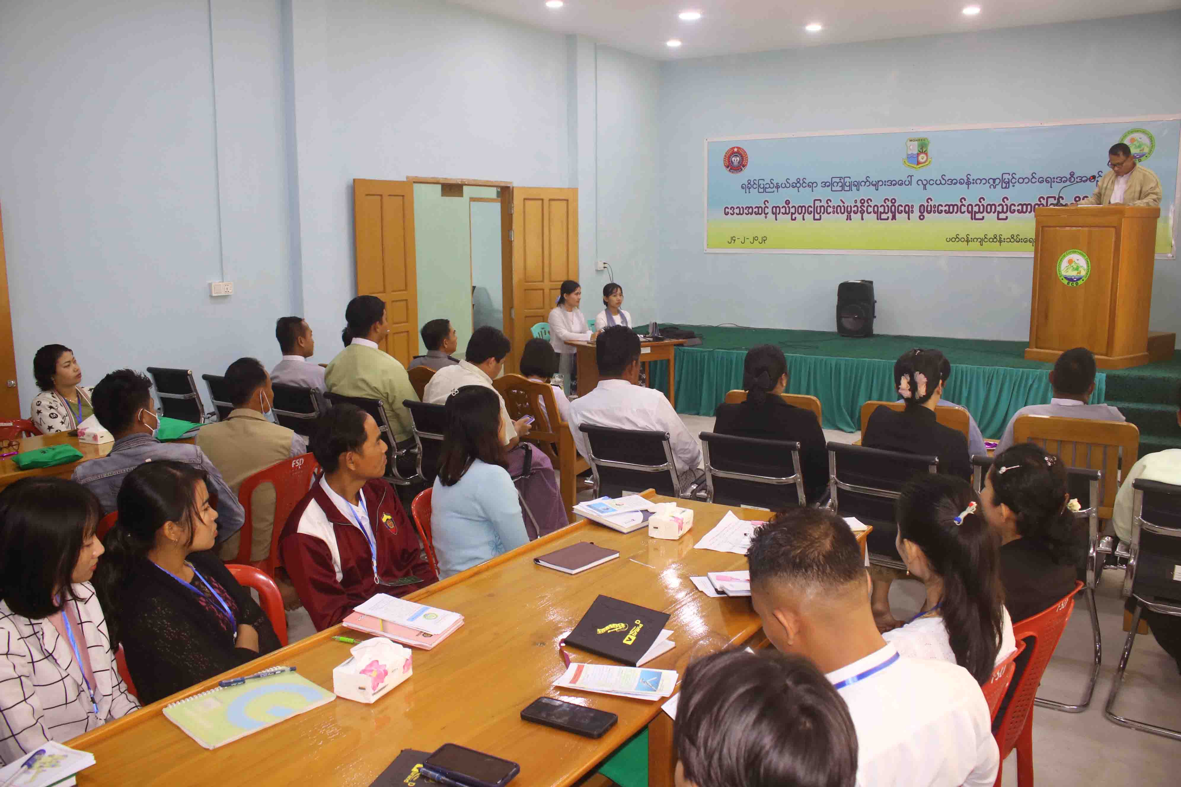 ရှေးဦးစွာ ကျောက်ဖြူခရိုင် စီမံအုပ်ချုပ်ရေးအဖွဲ့(အဖွဲ့ဝင်) ဦးတင်ရွှေက အဖွင့်အမှာစကား ပြောကြားပြီး ခရိုင်ပတ်ဝန်းကျင်ထိန်းသိမ်းရေးဦးစီးဌာန၊ ခရိုင်ဦးစီးမှူး ဦးလွမ်းမိုးထက်က သင်တန်းဖွင့်လှစ်ရခြင်းရည်ရွယ်ချက်နှင့် အကျိုးကျေးဇူးများကို ရှင်းလင်းပြောကြားခဲ့သည်။