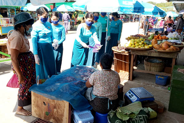 အဆိုပါ Mask Campaign ကို မြို့နယ်မိခင်နှင့်ကလေး စောင့်ရှောက်မှုကြီးကြပ်ရေးအသင်း ဥက္ကဌ ဒေါ်တင်ထွေးရီ နှင့် အသင်းဝင်(၆)ဦး၊ အမျိုးသမီးရေးရာအဖွဲ့ဝင်(၆)ဦး စုစုပေါင်း(၁၂)ဦး၊ မြို့နယ်စည်ပင်သာယာကော်မတီ ဥက္ကဌ ဦးဖြိုးတင့်ခိုင်၊မြို့နယ် စည်ပင်သာယာရေးအဖွဲ့ရုံးမှ ဦးစီးအရာရှိ ဒေါ်ကျော့မွန်ကံနှင့်ဝန်ထမ်းများ၊ ဈေးအကျိုးတော်ဆောင်များပူးပေါင်းဆောင်ရွက်ခဲ့ကြပြီး ၊ပြန်လည်အသုံးပြုနိုင်သည့် အဝတ်နှာခေါင်းစည်း(၅၀၀)နှင့် Fask Mask (၅၀၀) ဖြန့်ဝေပေးခဲ့ကြကြောင်း သိရသည်။