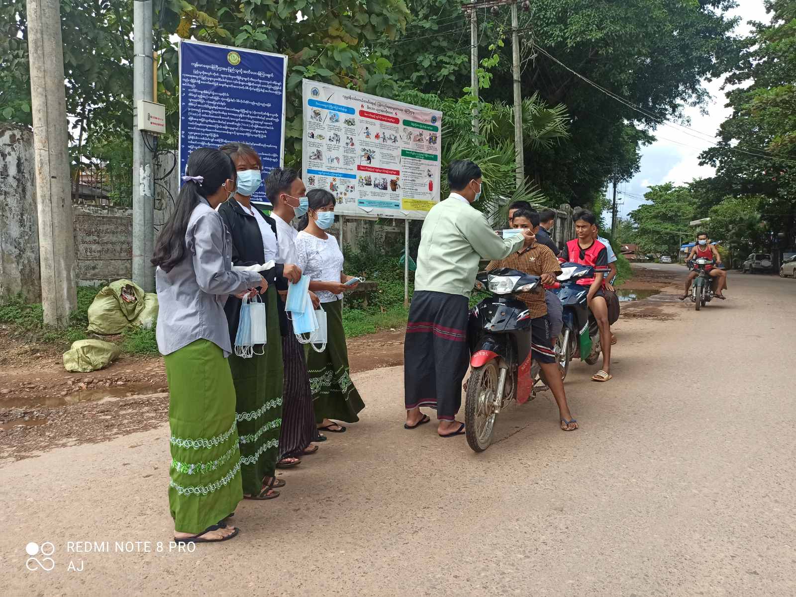 ထိုသို့ဖြန့်ဝေပေးရာတွင် ပြည်သူများအနေဖြင့် ကိုဗစ်-၁၉ အိုမီခရွှန်မျိုးကွဲ B4B5 ရောဂါပိုး ကြိုတင်ကာကွယ်ရေး အတွက် မြို့နယ်စီမံအုပ်ချုပ်ရေးကောင်စီဥက္ကဋ္ဌ ဦးကျော်ကျော်ဦးနှင့် ပူးပေါင်းအဖွဲ့ဝင်များက အောင်မဂ်လာ လမ်းဆုံလမ်းထောင့်တို့တွင် သွားလာနေကြသည့် ပြည်သူများနှင့် မုန့်စျေးတန်းဆိုင် ရောင်းချနေသည့်ပြည်သူများ အား Mask နှာခေါင်းစည်းတပ်ဆင်၍ သွားလာရေး အသိပေးနှိုးဆော်ပြီး Mask များကို အခမဲ့ဖြန့်ဝေပေးခဲ့ကြောင်း သိရသည်။