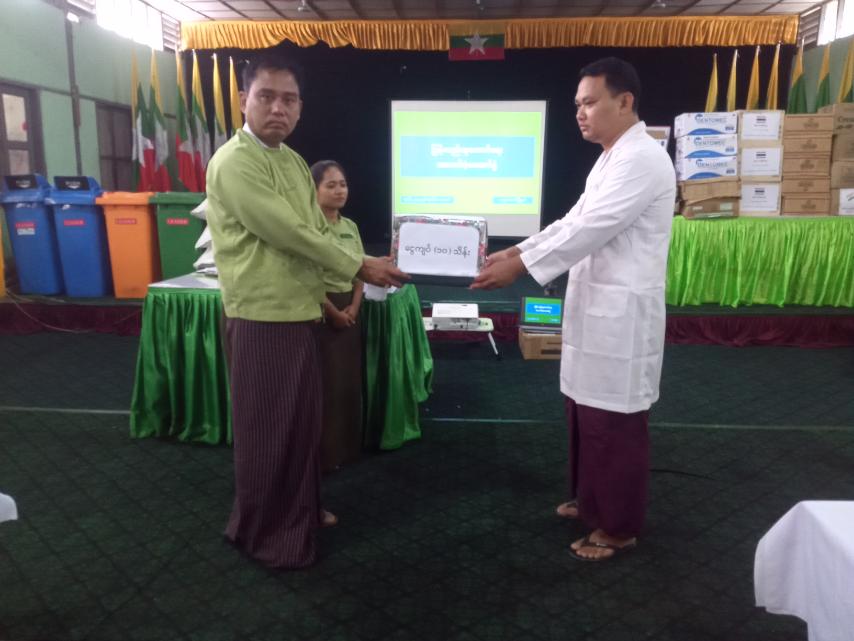 အခမ်းအနားတွင် သဘာဝဘေး အန္တရာယ်စီမံခန့်ခွဲမှုအဖွဲ့ ကျောက်တော်မြို့နယ်တာဝန်ခံ ဗိုလ်မှူးချုပ်အောင်သူဦးက အဖွင့်အမှာစကားပြောကြားပြီး ပြန်လည်ထူထောင်ရေးဆောင်ရွက်နေမှု အခြေအနေများကို Power Point ဖြင့် ရှင်းလင်းပြောကြားသည်။ ထို့နောက် သဘာဝဘေးအန္တရာယ် စီမံခန့်ခွဲမှုအဖွဲ့ ကျောက်တော်မြို့နယ် တာဝန်ခံ ဗိုလ်မှူးချုပ်အောင်သူဦးနှင့် အဖွဲ့ဝင်များက ပြန်လည်ထူထောင်ရေးလုပ်ငန်းအတွက် အသုံးပြုရန် လိုအပ်သည့်ဌာန ခုနစ်ခု အား ဂုဏ်ပြုထောက်ပံ့ငွေ ကျပ် ၈၂၇၀၀၀၀ ကို လည်းကောင်း၊ ပညာရေးဌာနအတွက် အမှိုက်ပုံး ၂၅ ပုံးကိုလည်းကောင်း၊ ဌာနဆိုင်ရာများအား ဆန်အိတ်များကိုလည်းကောင်း၊ ကျောက်တော်တပ်နယ် စိုက်ပျိုးမွေးမြူရေးလုပ်ငန်းအတွက် သံများကိုလည်းကောင်း ထောက်ပံ့ပေးအပ်ရာ တာဝန်ရှိသူများက လက်ခံရယူကြသည်။