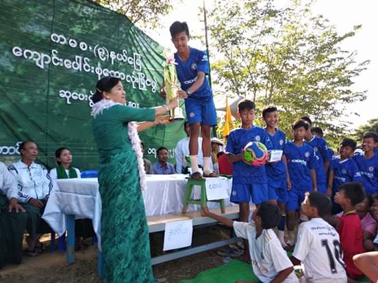 ထို့နောက် ပြိုင်တွင် ပထမ၊ဒုတိယ၊တတိယဆုရရှိသော ကျောင်းများအား ချောင်းကွေ့ကျေးရွာ အခြေခံပညာအလယ်တန်းကျောင်းမှ (ကျား)ဘောလုံးအသင်းအား မြို့နယ်ပညာရေးမှူကလည်းကောင်း၊ ပထဆုရရှိသော ဇီးဖြူကုန်းကျေးရွာ အခြေခံပညာအလယ်တန်း(ခွဲ)ကျောင်းမှ (မ)ဘောလုံးအသင်းအား အာ/ကာဦးစီးမှူးကလည်းကောင်း၊ ဒုတိယဆုရရှိသော ဇီးဖြူကုန်းကျေးရွာ အခြေခံပညာအလယ်တန်း(ခွဲ) ကျောင်းမှ (ကျား)ဘောလုံးအသင်းအား၊ လက်ထောက်ပညာရေးမှူး ဦးမောင်ပုကလည်းကောင်း၊ ဒုတိယဆရရှိသော တုံးတင်တပ်ကျေးရွာ အခြေခံပညာအလယ်တန်းကျောင်းမှ (မ)ဘောလုံးအသင်းအား လက်ထောက်ပညာရေးမှူး ဦးအောင်လင်းကလည်းကောင်း ပထမဆု ကျပ် ၁သိန်း၊ဒုတိယဆု ၇သောင်းနှင့် တတိယဆု ငွေကျပ် ၅ သောင်းနှင့် ဆုတံဆိပ်နှင့် တံခွန်စိုက်ဆုဖလားကိုများအား တာဝန်ရှိသူများက အသီသီးပေးအပ်ခဲ့သည်။