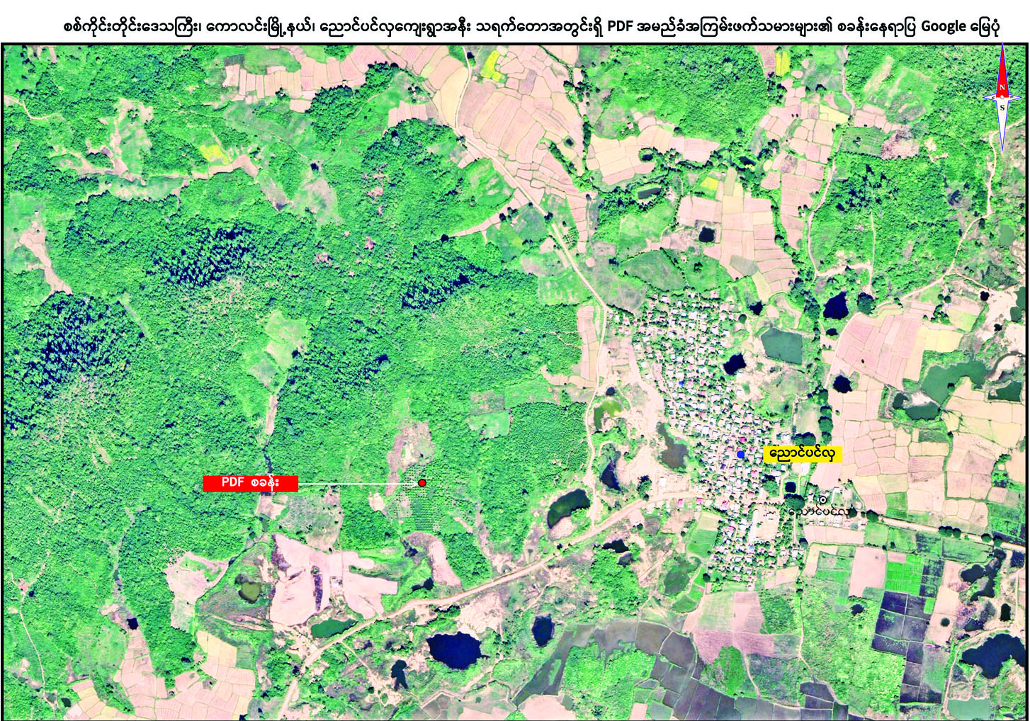 PDF အမည်ခံ အကြမ်းဖက်သမားများအနေဖြင့် ယခုကဲ့သို့ ကျေးရွာပြည်သူလူထုကို အကာအကွယ်ရယူ ခိုအောင်းနေထိုင်ကာ အကြမ်းဖက်လုပ်ရပ်များကို လုပ်ဆောင်လျက်ရှိရာ ၎င်းတို့ပုန်းခိုရာနေရာများ၊ လှုပ်ရှားသွားလာနေထိုင်မှု သတင်းများရရှိပါက သက်ဆိုင်ရာသို့ လျှို့ဝှက်စွာ သတင်းပေး တိုင်ကြားနိုင်ပါကြောင်း၊ သတင်းပေးသူနှင့် ဖမ်းဆီးပေးသူများအား ထိုက်တန်စွာ လျှို့ဝှက်၍ ဆုငွေများ ချီးမြှင့်ပေးလျက်ရှိကြောင်းနှင့် မြို့ရွာများ အမြန်ဆုံးအေးချမ်း တည်ငြိမ်ရေးအတွက် ပြည်သူတစ်ရပ်လုံး ပူးပေါင်းပါဝင် ကြိုးပမ်းဆောင်ရွက် နိုင်ပါရန် မေတ္တာရပ်ခံထားကြောင်း သိရသည်။