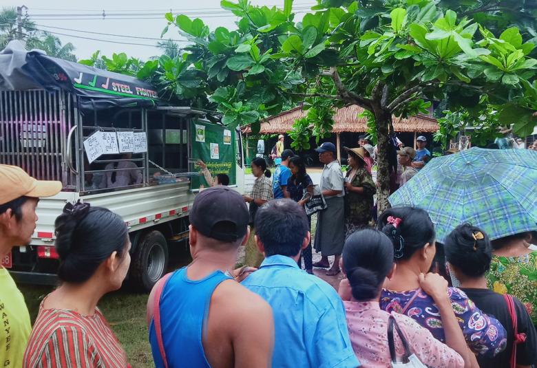 ထိုသို့ရောင်းချပေးရာတွင် ဒေသခံပြည်သူများ အဆင်ပြေစွာ ဝယ်ယူစားသုံးနိုင်ရေးအတွက် ဧည့်မထတစ်ပြည်လျှင် ငွေကျပ် ၁၀၀၀ နှုန်းဖြင့် ဆန်ငါးပြည်တစ်အိတ်ကို ငွေကျပ် ၅၀၀၀ ကျပ်နှုန်းဖြင့် ဆန်အိတ် (၇၅)အိတ်အား လည်းကောင်း၊ ပေါ်ဆန်းတစ်ပြည်လျှင် ငွေကျပ် ၁၇၀၀ နှုန်းဖြင့် ဆန်ငါးပြည်တစ်အိတ်ကို ငွေကျပ် ၈၅၀၀ ဖြင့် ဆန်အိတ် (၇၅)အိတ်အား လည်းကောင်း၊ ဆီငါးဆယ်သားတစ်ဘူးလျှင် ငွေကျပ် ၂၉၀၀ ဖြင့် ဆီ(၄၀၀)ဘူးအား လည်းကောင်း၊ ကြက်ဥတစ်လုံးလျှင် ၁၇၀ ကျပ်ဖြင့် ကြက်ဥဆယ်လုံးကဒ် (၅၀)ကဒ်တို့အား လည်းကောင်း လာရောက်ရောင်းချပေးသည်။