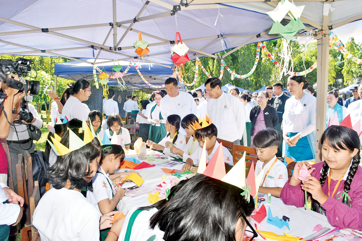 ထို့နောက် တာဝန်ရှိသူများက ကျောင်းစာကြည့်တိုက်များ ဖွံ့ဖြိုးတိုးတက်ရေးနှင့် စာဖတ်ရှိန်မြှင့်တင်ရေး အခမ်းအနားကို ဖွင့်လှစ်ပေးကြပြီး ပြခန်းများ၊ စာအုပ်အရောင်းဆိုင်များနှင့် ကျောင်းသား ကျောင်းသူများ၏ စာစီစာကုံး၊ ကျပန်း၊ စာဖတ်စွမ်းရည်၊ စိတ်ကြိုက်ပန်းချီ၊ ဉာဏ်စမ်းပဟေဠိ၊ ကဗျာရွတ်ဆို၊ ပုံပြင်ပြော၊ ဆေးရောင်ခြယ်၊ ပျော်ရွှင်ဖွယ်ရာ ကစားနည်း ယှဉ်ပြိုင်နေမှုကို ကြည့်ရှုအားပေး၍ ကျောင်းသား ကျောင်းသူများအား ဂုဏ်ပြုချီးမြှင့်ငွေနှင့် ပါဝင်ဆွေးနွေးသူများအား ဂုဏ်ပြုလက်ဆောင်နှင့် ချီးမြှင့်ငွေများ ပေးအပ်သည်။