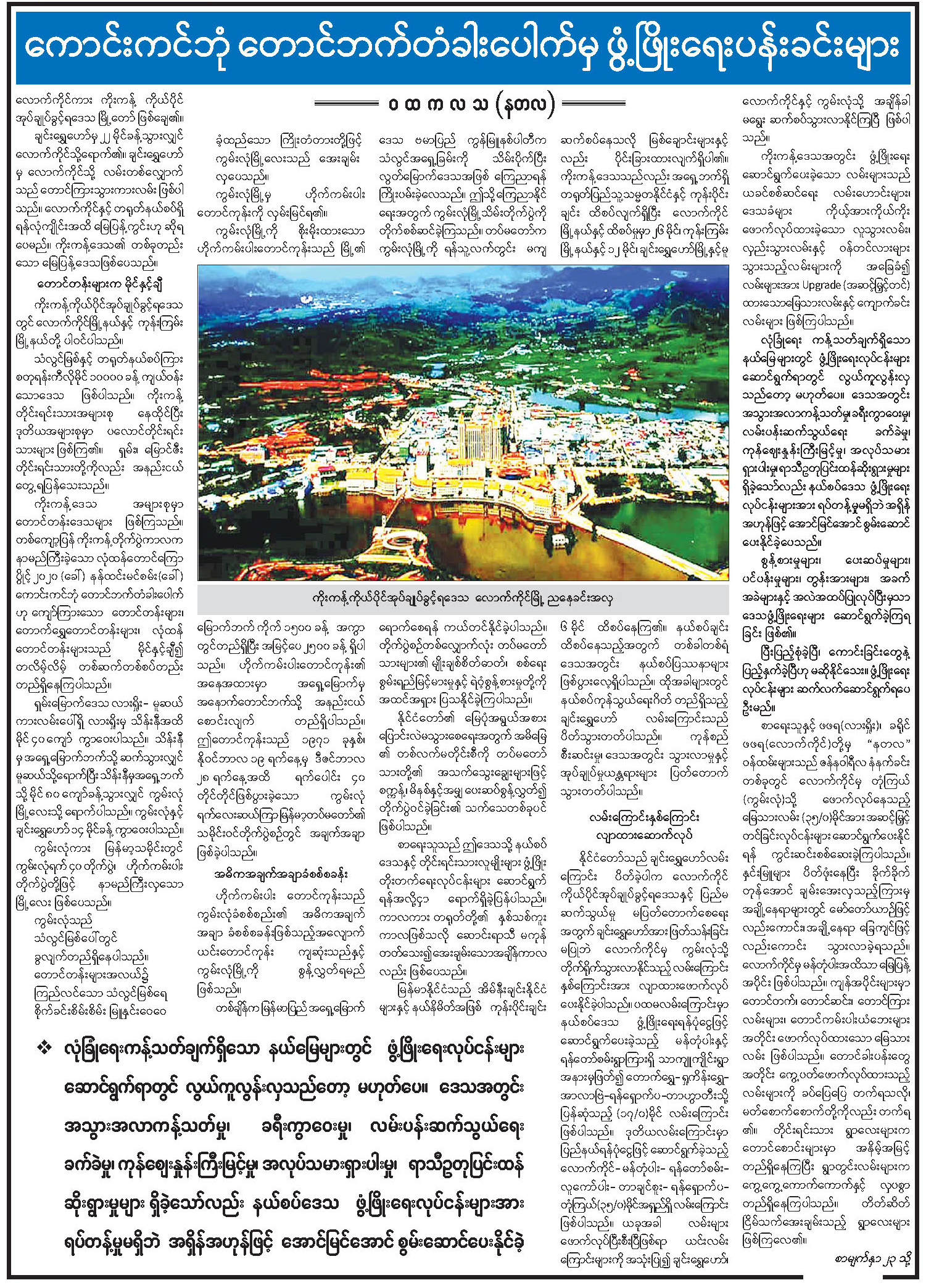 ကောင်းကင်ဘုံ တောင်ဘက်တံခါးပေါက်မှ ဖွံ့ဖြိုးရေးပန်းခင်းများ