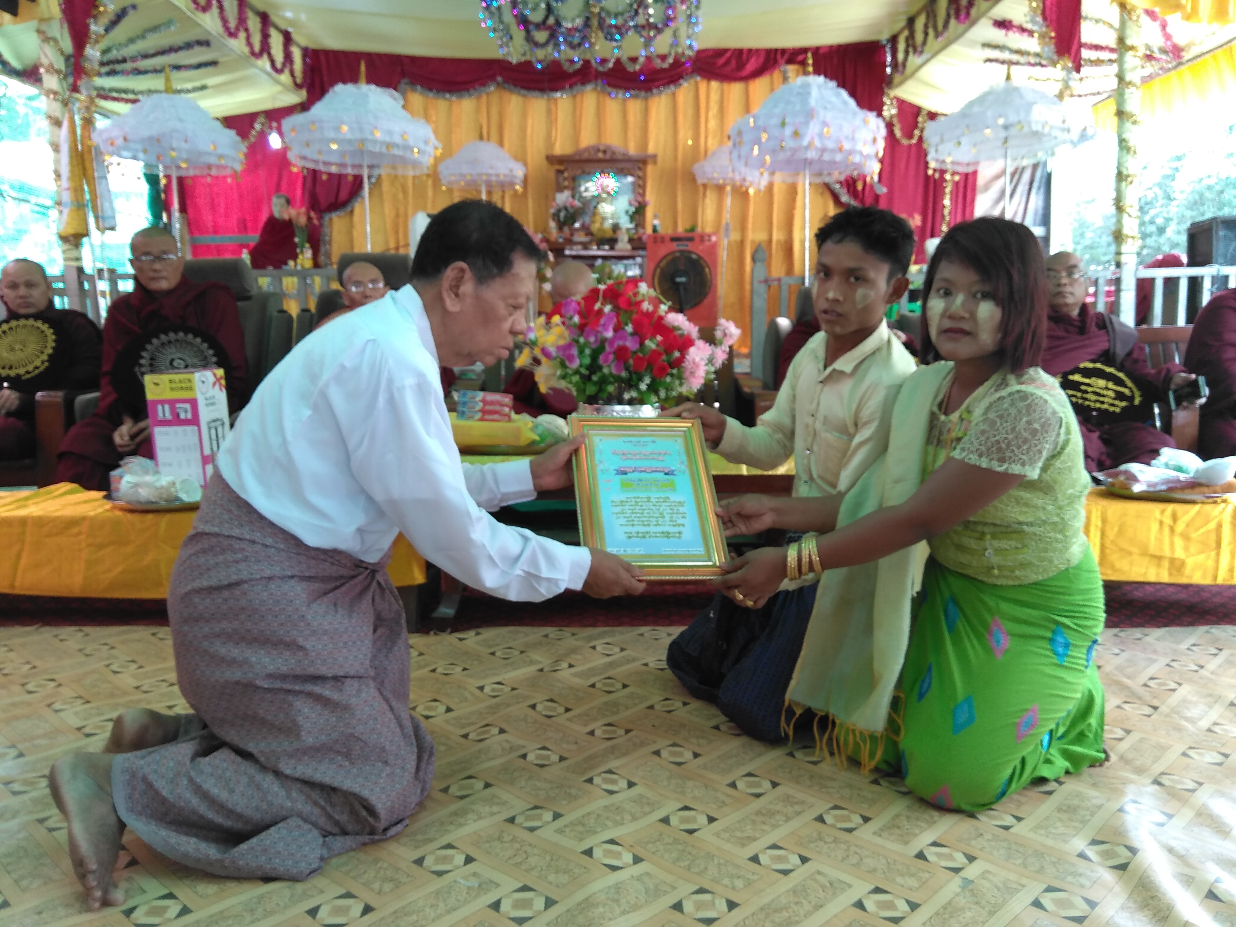 ယင်းနောက် သံဃာတော်အရှင်သူမြတ်များထံမှ ပရိတ်တရားတော်နာကြား၍ အနုမောဒနာတရားနာကြားကာ ရေစက်သွန်းချ အမျှပေးဝေခဲ့ကြကြောင်း သိရသည်။