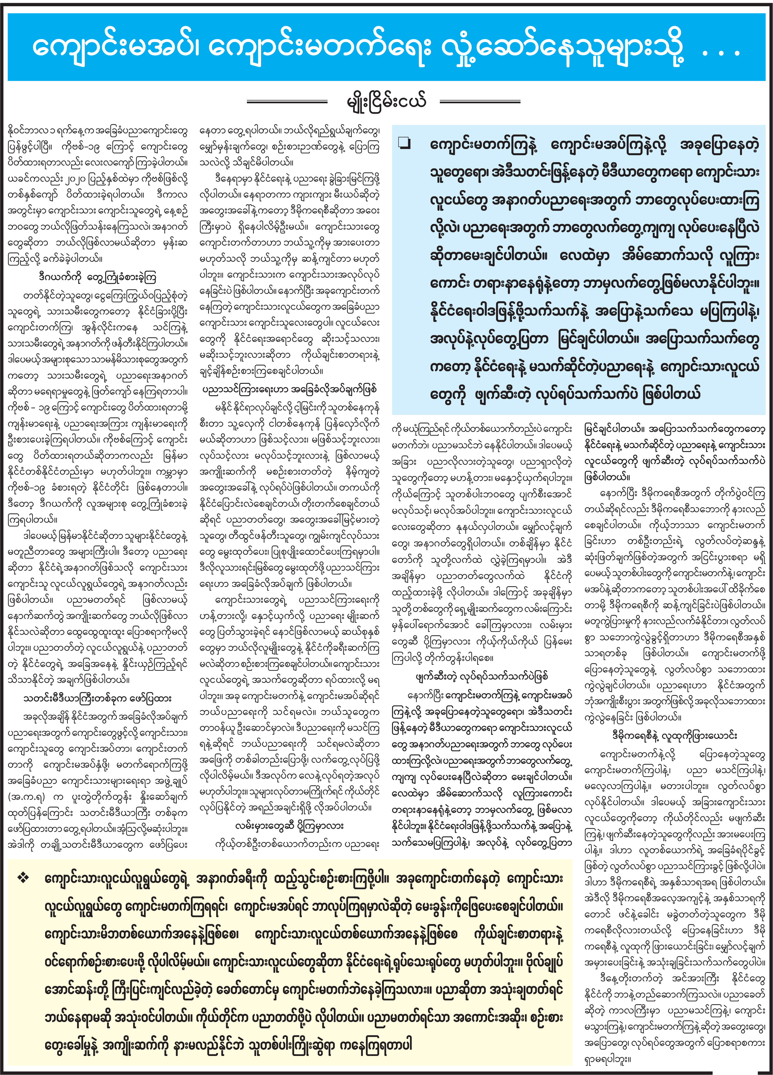 ကျောင်းမအပ် ကျောင်းမတက်ရေး လှုံ့ဆော်နေသူများသို့