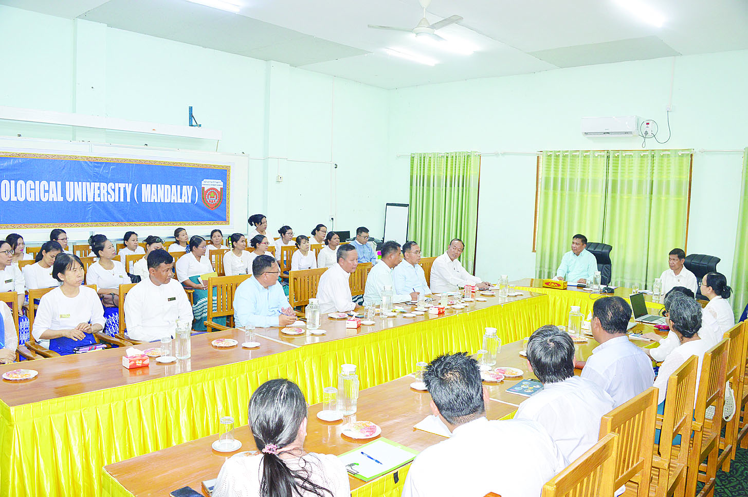 ထို့နောက် ပြည်ထောင်စု ဝန်ကြီးသည် မန္တလေးမြို့သို့ ရောက်ရှိပြီး မြန်မာသတင်းအချက်အလက် နည်းပညာတက္ကသိုလ်သို့ သွားရောက်ကာ ပင်မစာသင်ဆောင်တွင် ပြိုကျပျက်စီးမှုနှင့် အကြီးစားပြုပြင်ရန် လိုအပ်မှု အခြေအနေများ၊ ဝန်ထမ်းအိမ်ရာ အဆောက်အအုံများရှိ ပြုပြင်ရန် လိုအပ်မှုအခြေအနေများ၊ ICT အသုံးပြု၍ သင်ကြားသင်ယူမှုများ အရှိန်အဟုန်မပြတ် ဆောင်ရွက်နိုင်ရေးအတွက် Data Center ပြုပြင်ထိန်းသိမ်းရန် လိုအပ်ချက်များကို လှည့်လည်ကြည့်ရှု စစ်ဆေးပြီး ကျောင်းပြန်လည်ဖွင့်လှစ်ရာတွင် စာသင်ခန်း၊ လက်တွေ့ခန်းနှင့် ကွန်ပျူတာခန်း လိုအပ်ချက်များ ဖြည့်ဆည်းပေးနိုင်ရေးအတွက် အစိုးရစက်မှုလက်မှုသိပ္ပံ (မန္တလေး) ကျောင်းအုပ်ကြီးနှင့် တာဝန်ရှိသူများအား လိုအပ်သည်များကို ပေါင်းစပ်ညှိနှိုင်း ဆောင်ရွက်ပေးသည်။