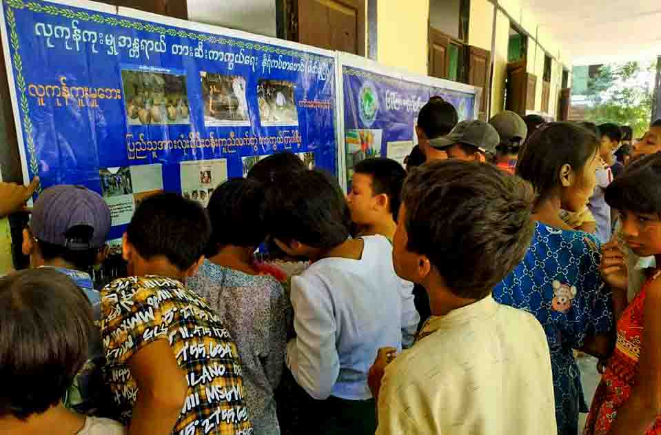 ထို့နောက် မြို့နယ် ပြန်ကြားရေးနှင့် ပြည်သူ့ဆက်ဆံရေးဦးစီးဌာနမှ ဒုတိယဦးစီးမှူးနှင့် ဝန်ထမ်းများက ကျောင်းသား ကျောင်းသူများ အသိပညာဗဟုသုတ တိုးပွားစေရေးအတွက် လူကုန်ကူးမှုတားဆီးကာကွယ်ရေး သိကောင်းစရာ ဓာတ်ပုံပြပွဲနှင့် မျောက်ကျောက်ရောဂါ၊ ကိုဗစ်-၁၉ မျိုးကွဲသစ် အိုမီခရွန်ရောဂါ ကြိုတင်ကာကွယ်ရေး အသိပညာပေး နံရံကပ်စာစောင်များကို ခင်းကျင်းပြသရာ ကျောင်းသားကျောင်းသူများက စိတ်ဝင်တစား လေ့လာဖတ်ရှုခဲ့ကြကြောင်း သိရသည်။