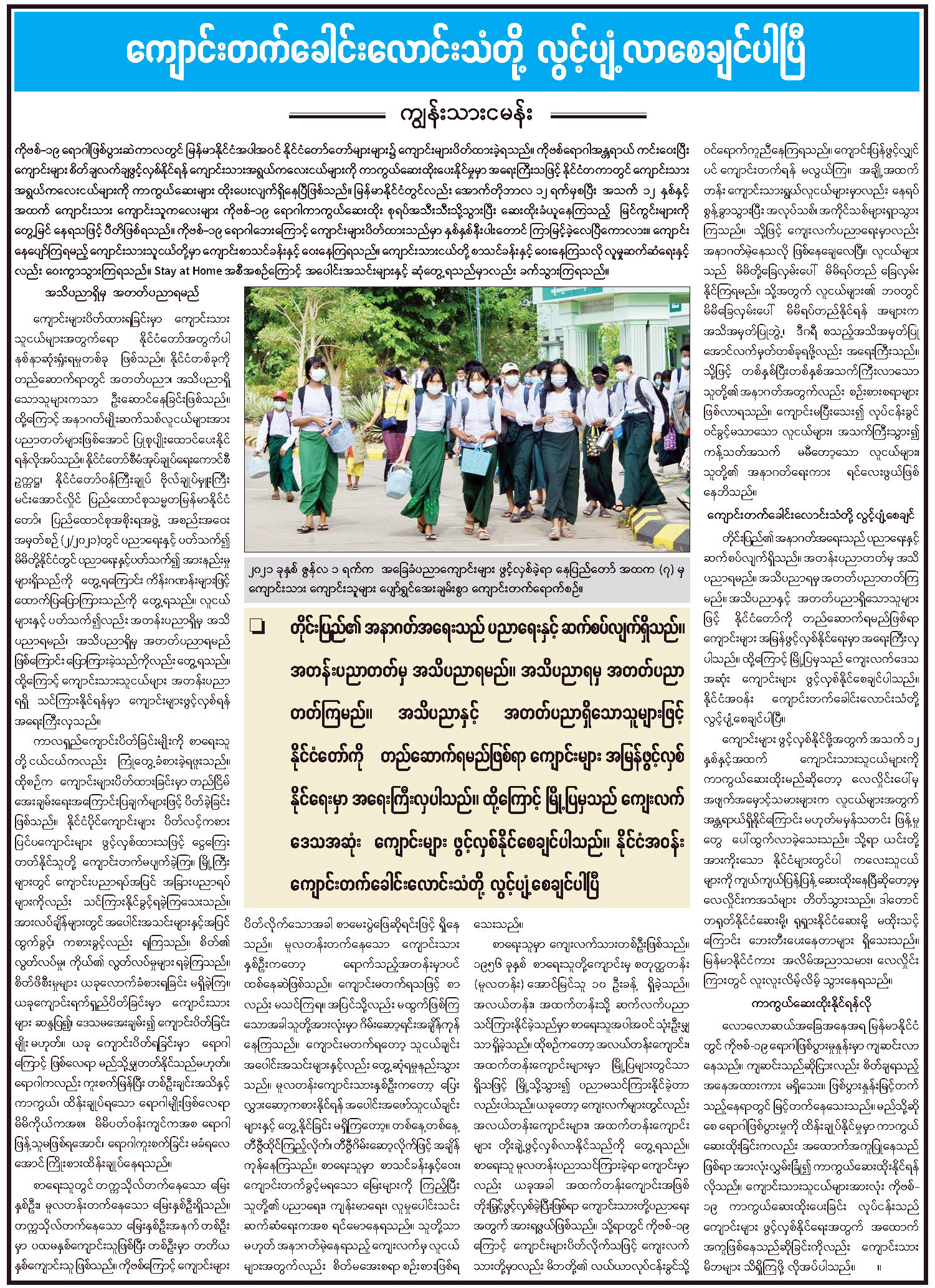 ကျောင်းတက်ခေါင်းလောင်းသံတို့ လွင့်ပျံလာစေချင်ပါပြီ