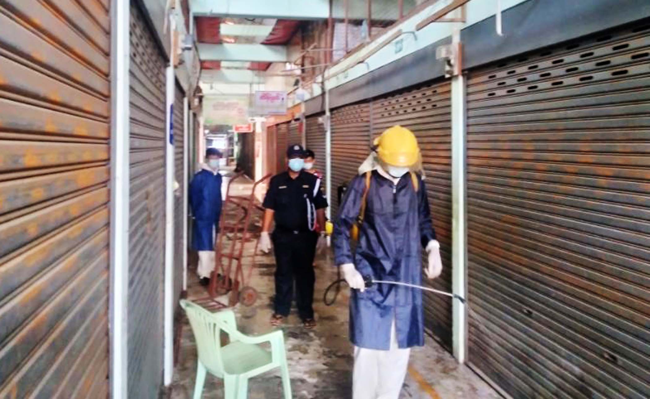ယနေ့ပြန်လည်ဖြစ်ပေါ် ကူးစက်လျက်ရှိသည့် COVID-19 ရောဂါ မြို့နေပြည်သူများသို့ ကူးစက်မှုမရှိစေရေး ဆောင်ရွက်လျက်ရှိရာ မြန်မာ-ထိုင်းနယ်စပ် ကော့သောင်းမြို့တွင် ယနေ့နံနက်ပိုင်းက ကော့သောင်းခရိုင် မီးသတ်တပ်ဖွဲ့မြို့ပေါ်ရပ်ကွက်များရှိ ဈေးများအတွင်း ရောဂါကာကွယ်ထိန်းချုပ်ရေး ပိုးသတ်ဆေးဖျန်းခြင်းလုပ်ငန်းများ ဆောင်ရွက်ခဲ့ကြကြောင်း သိရသည်။