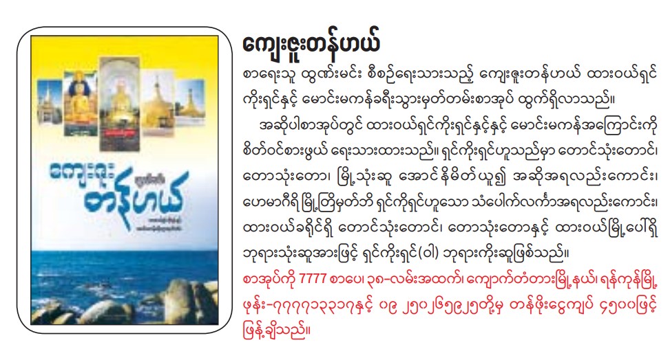 ကျေးဇူးတန်ဟယ် စာအုပ်ထွက်ရှိ