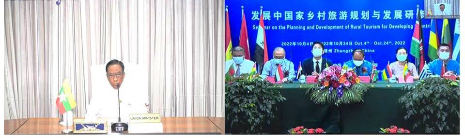 တရုတ်ပြည်သူ့သမ္မတနိုင်ငံ၊ စီးပွားရေးနှင့် ကူးသန်းရောင်းဝယ်ရေး ဝန်ကြီးဌာနနှင့် ကျန့်ကျိုးသိပ္ပံနှင့် နည်းပညာကောလိပ်တို့ ပူးပေါင်း၍ ဖွင့်လှစ်သော “ကျေးလက်ဒေသ ခရီးသွား လုပ်ငန်းဖွံ့ဖြိုးတိုးတက်ရေးနှင့် စီမံကိန်းရေးဆွဲရေးဆိုင်ရာ ဆွေးနွေးပွဲ”ကို ယနေ့ မွန်းလွဲပိုင်းတွင် ကျင်းပရာ ပြည်ထောင်စုဝန်ကြီး ဒေါက်တာဌေးအောင် ဗီဒီယိုကွန်ဖရင့်စနစ် ဖြင့် တက်ရောက်အမှာစကား ပြောကြားသည်။