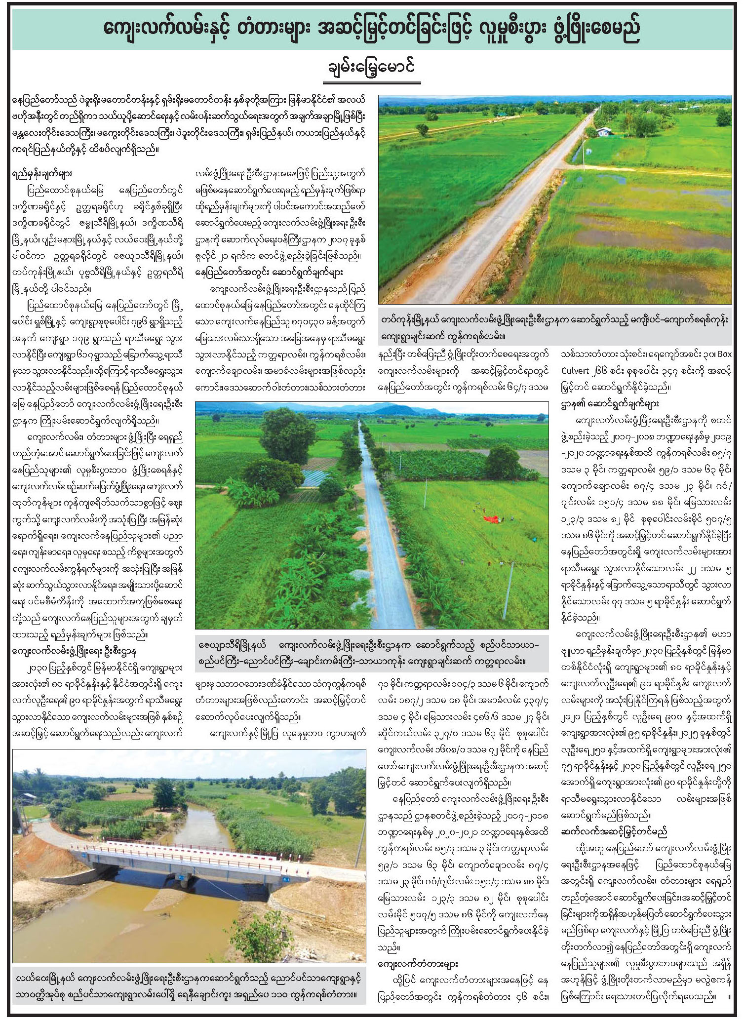 ကျေးလက်လမ်းနှင့်တံတားများ အဆင့်မြှင့်တင်ခြင်းဖြင့် လူမှုစီးပွားဖွံ့ဖြိုးစေမည်