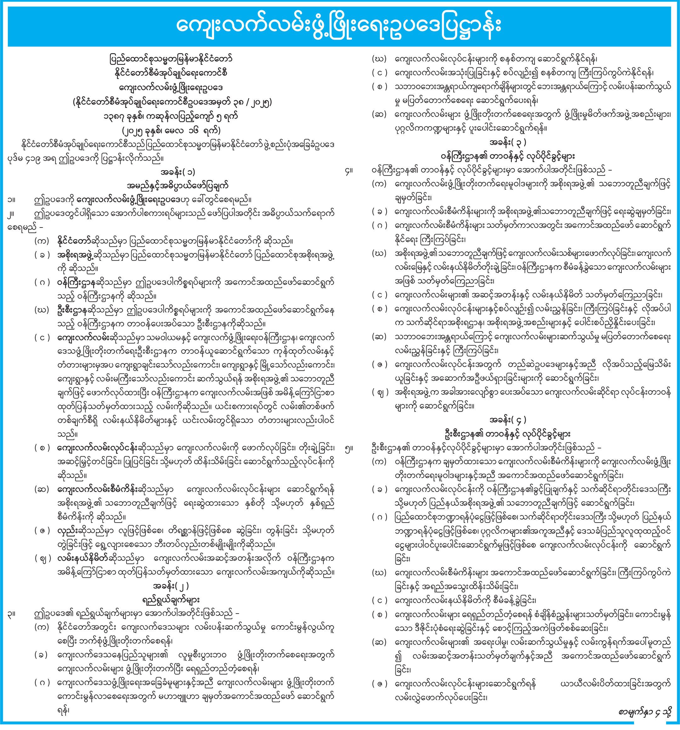 ကျေးလက်လမ်းဖွံ့ဖြိုးရေးဥပဒေပြဋ္ဌာန်း