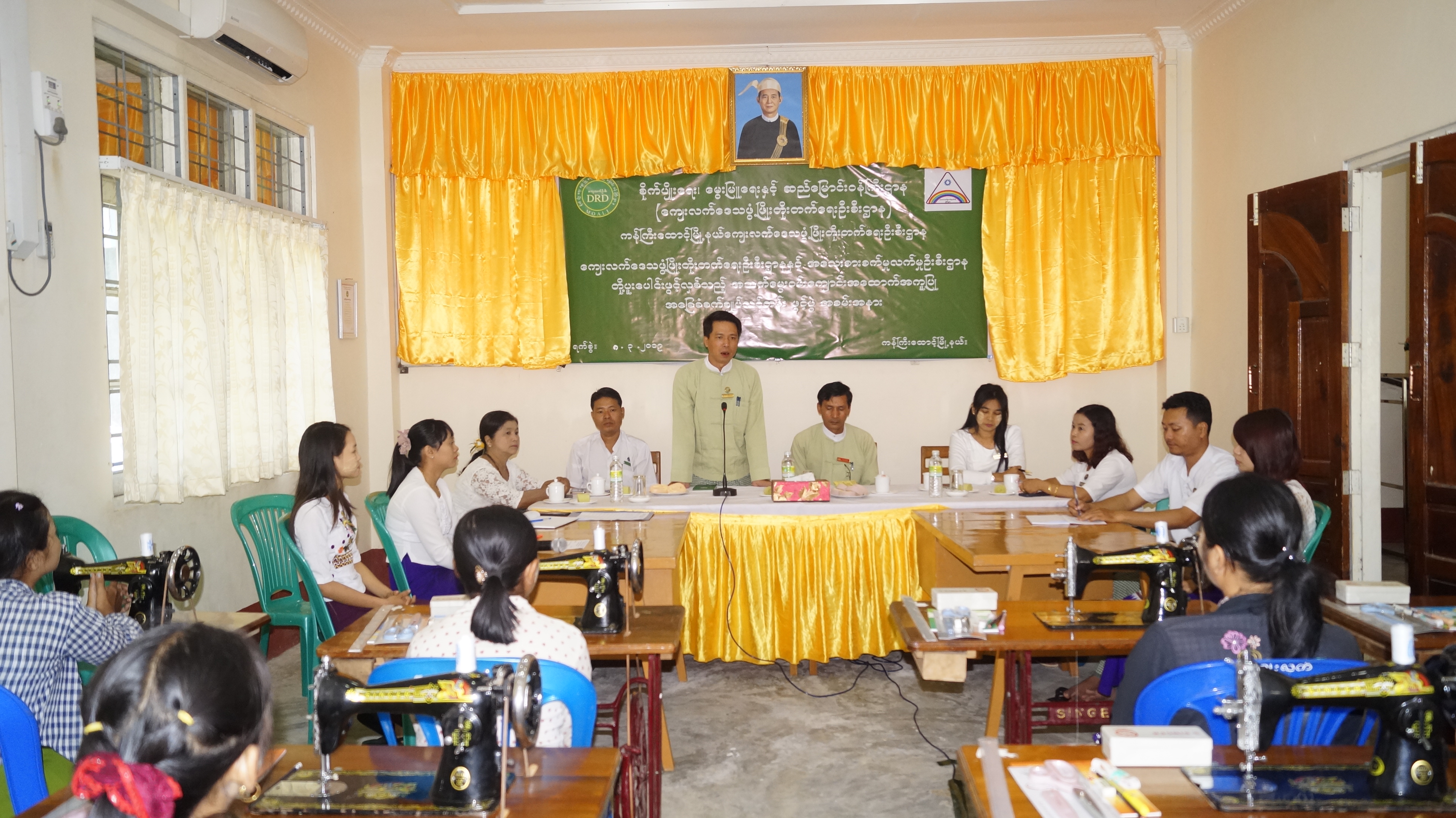 ကျေးလက်နေအမျိုးသမီးများ အလုပ်အကိုင်အခွင့်အလမ်းများရရှိစေရေးနှင့် လူမှုစီးပွားဘဝများ ဖွံ့ဖြိုးတိုးတက်လာစေရေး ရည်ရွယ်၍ ဧရာဝတီတိုင်းဒေသကြီး၊ ကန်ကြီးထောင့်မြို့နယ် ကျေးလက်ဒေသဖွံ့ဖြိုးတိုးတက်ရေးဦးစီးဌာနနှင့် အသေးစားစက်မှုလက်မှုဦးစီးဌာနတို့ ပူးပေါင်းဖွင့်လှစ်သည့် ၂၀၁၈-၂၀၁၉ ဘဏ္ဍာနှစ် အခြေခံစက်ချုပ် သင်တန်းဖွင့်ပွဲ အခမ်းအနားကို ယနေ့ နံနက် ၁၀ နာရီက မြို့နယ်ကျေးလက်ဒေသ ဖွံ့ဖြိုးတိုးတက်ရေးဦးစီးဌာနခန်းမ၌ ကျင်းပခဲ့သည်။