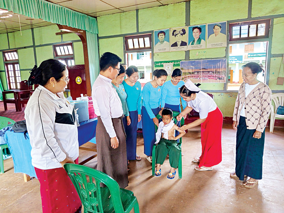 ထို့နောက် မြို့နယ်ပြည်သူ့ကျန်းမာရေးဦးစီးဌာနမှူး၏ ကြီးကြပ်မှုဖြင့် ကျန်းမာရေးဝန်ထမ်းများက အခြေခံပညာ အထက်တန်းကျောင်းရှိ KG ကျောင်းသား ကျောင်းသူ ၄၆ ဦးအား ဆုံဆို့မေးခိုင်ကာကွယ်ဆေးနှင့် အသက်ကိုးနှစ်၊ ၁၀ နှစ်အရွယ် ကျောင်းသူ ၅၃ ဦးအား သားအိမ်ခေါင်း ကင်ဆာရောဂါ ကာကွယ်ဆေးများကို စနစ်တကျ ထိုးနှံပေးခဲ့ကြောင်း သိရသည်။
