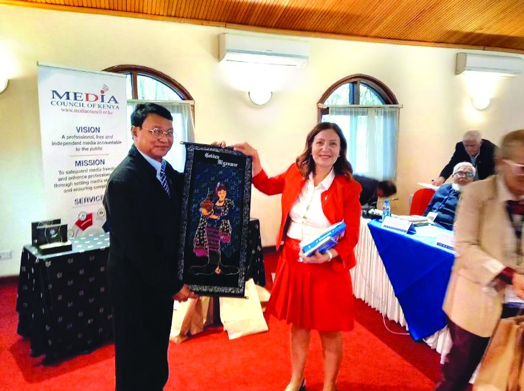 ကမ္ဘာ့သတင်းမီဒီယာကောင်စီ (World Asso-ciation of Press Council) ၏ ဥက္ကဋ္ဌမှာ Dr.Sule Aker ဖြစ်သည်။ ထိုအမျိုးသမီးမှာ အသက် ၆၀ ဝန်းကျင်မျှသာ ရှိသေး၏။ မေလ ၃ ရက် နံနက် ၈ နာရီ ၄၅ မိနစ်တွင် အစည်းအဝေးစတင်သည်။ ထိုနေ့က ဖွင့်ပွဲနေ့ဖြစ်၍ အစည်းအဝေးသို့ တက်ရောက်လာကြသည့် နိုင်ငံပေါင်း ၂၃ နိုင်ငံမှ သတင်းမီဒီယာကောင်စီဥက္ကဋ္ဌများနှင့် ကင်ညာ သတင်းမီဒီယာကောင်စီ၊ ကင်ညာပြန်ကြားရေးဝန်ကြီးတို့ အမှတ်တရဓာတ်ပုံရိုက်ကြသည်။ ထိုင်ခုံတွေ ဆက်တီအသုံးပြုခြင်းမရှိဘဲ မြက်ခင်းပြင်ပေါ်မှာပင် တိုးတိုးဝှေ့ဝှေ့နှင့် စီတန်းဓာတ်ပုံရိုက်ခြင်း ဖြစ်၏။ ထိုနေ့က တက်ရောက်လာသော နိုင်ငံ ၂၃ နိုင်ငံမှာ ကင်ညာ၊ နီပေါ၊ ဆိုက်ပရပ်စ်၊ ဇင်ဘာဘွေ၊ အဇာဘိုင်ဂျန်၊ ဘင်္ဂလားဒေ့ရှ်၊ အိန္ဒိယ၊ အီရတ် (အရှေ့အလယ်ပိုင်း)၊ ကိုဆိုဗို၊ မာစီ ဒိုနီယန်၊ မြန်မာ၊ မာလာဝီ၊ ပါကစ္စတန်၊ သီရိလင်္ကာ၊ ဆွစ်ဇာလန်၊ တန်ဇန်နီးယား၊ တူကီယဲ၊ ယူဂန္ဓာ၊ ဇမ်ဘီယာ၊ မော်လ်ဒိုက်၊ အာဖဂန်နစ္စတန်၊ ဆေးရှဲလ်၊ ဘူတန်တို့ ဖြစ်သည်။ မှတ်တမ်းတင်ဓာတ်ပုံရိုက်ပြီးမှ အခမ်းအနားစတင်ပါသည်။