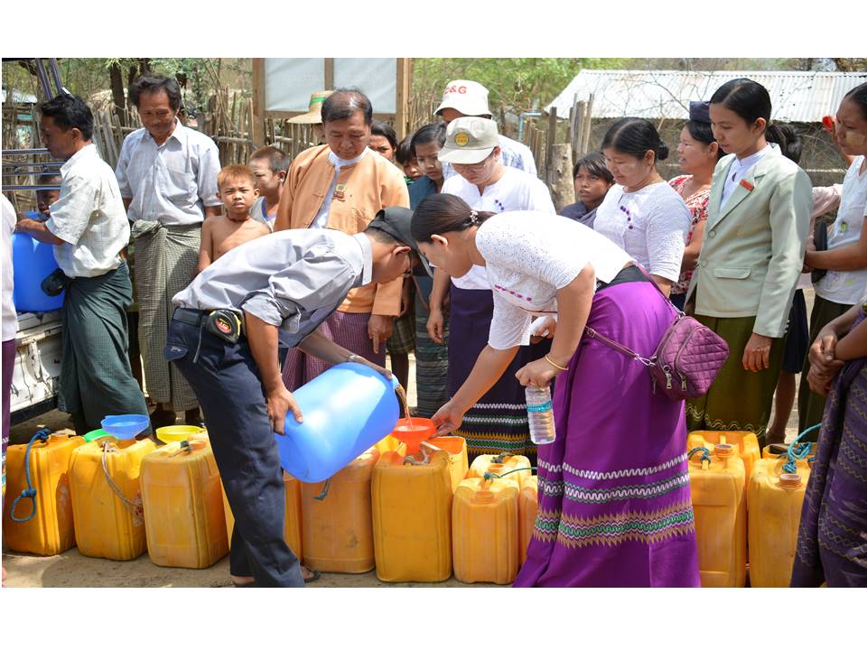 "အခုနွေရာသီမှာ သောက်သုံးရေပြတ်လပ်တဲ့ ဘယ်ကျေးရွာမဆို ကျွန်မတို့ဌာနကို အကြောင်းကြားပေးပါ၊ အရောက်လာပြီးတော့ အကူအညီပေးသွားမှာပါ အခုကျေးရွာမှာလဲ အဝီစိတွင်းတွေရှိပေမယ့် ရေထွက်အား နည်းနေတဲ့အတွက် ပညာရှင်တွေခေါ်ပြီး စစ်ဆေးပြီးတော့ အကောင်းဆုံးဖြစ်အောင် လုပ်ဆောင်ပေးသွားမှာပါ" ဟု မြို့နယ်ကျေးလက်ဒေသ ဖွံ့ဖြိုးတိုးတက်ရေး ဦးစီးဌာနမှ မြို့နယ်ဦးစီးမှူး ဒေါ်ခင်စိုးဝင်းကပြောသည်။