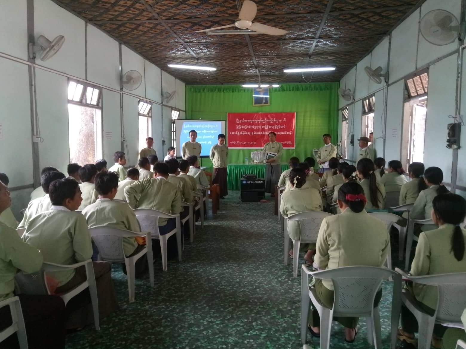 သင်တန်းတွင် မုံရွာခရိုင် အထွေထွေအုပ်ချုပ်ရေးဦးစီးဌာနမှ ခရိုင်အုပ်ချုပ်ရေးမှူး ဦးအောင်မြင့်စိုးက အမှာစကားပြောကြားသည်။