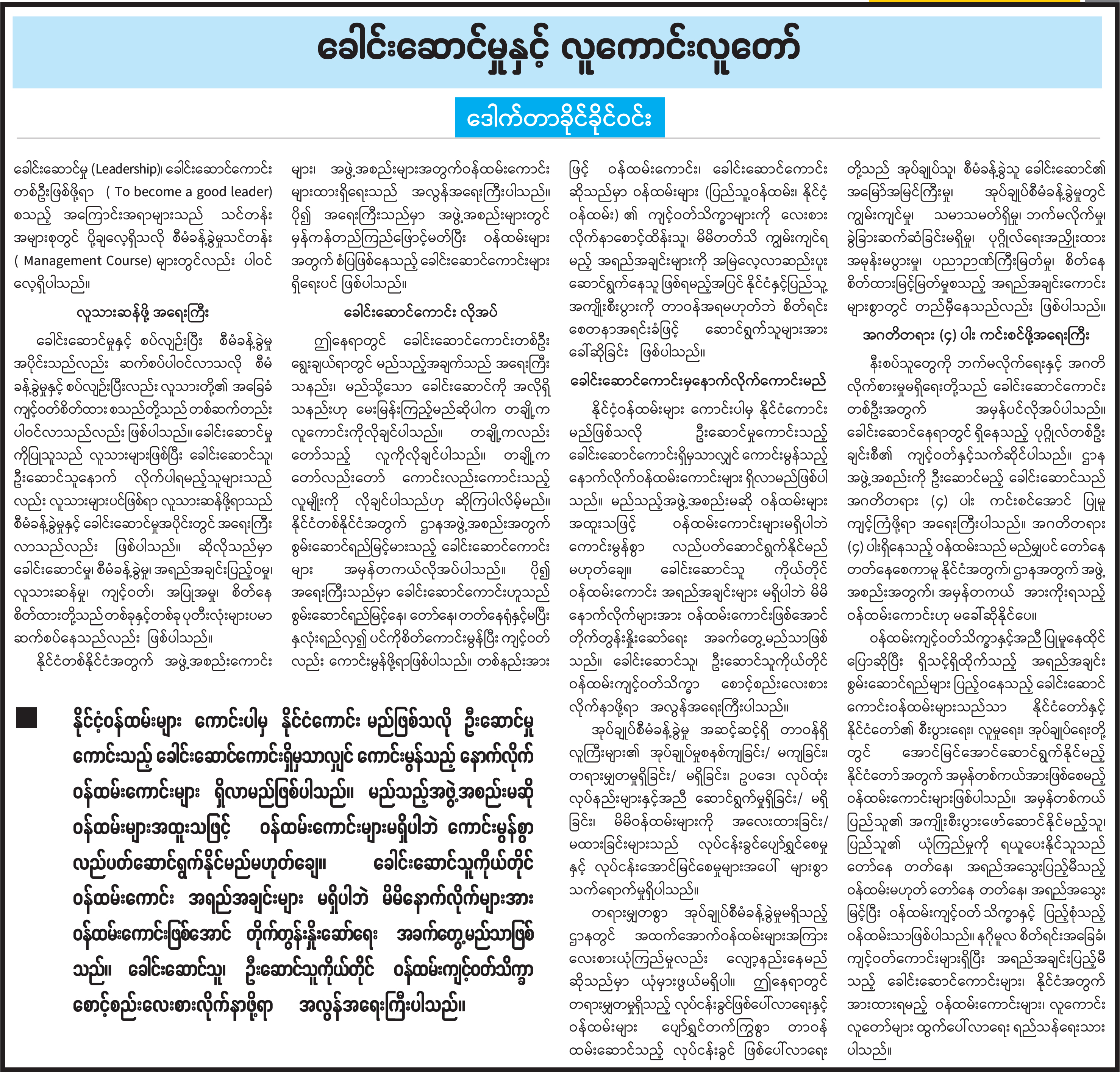 ခေါင်းဆောင်မှုနှင့် လူကောင်းလူတော်