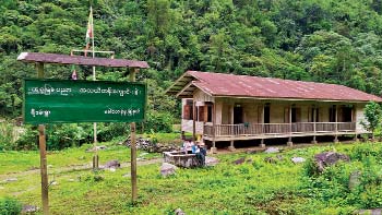 ကျွန်တော်တို့ နုဝမ်ဂေါင်စခန်းကစထွက်တော့ နံနက် ၈ နာရီပင်ထိုးပြီ။ ချောင်းရေစီးဆင်းသံများ တဝေါဝေါ၊ တဖြောဖြော။ လေးဖက်လေးတန်မြင့်မားသော တောင်တန်း ကြီးများက ရှုမျှော်မဆုံး။ ရွှံ့ညွန်အထပ်ထပ်၊ ကျောက်တုံး ကျောက်ဆောင်အထပ်ထပ်ပြည့်နေသော တောင်တက်ခရီး ကြမ်းကို စတင်လေပြီ။ လူတိုင်းကိုယ်စီ တောင်ဝှေး တစ်ချောင်းစီကိုင်ထားသည်။ တောင်ဝှေးသည် ထိုတောင် တက်ခရီးအတွက် အတော်လေးအားကိုးရသည်။ ခြေထောက် နှစ်ချောင်းဖြင့်ထိန်း၍ လျှောက်မရသောနေရာတွင် တောင်ဝှေးနှင့် လှမ်းထောက်လိုက်သဖြင့် ရှေ့ကို ခြေလှမ်း အဆင်ပြေစွာ လှမ်းနိုင်သည်။ ရုတ်တရက် လဲမကျအောင် လည်း တောင်ဝှေးက ထိန်းထားနိုင်သည်။ တောင်ဝှေးသည် ကျွန်တော်တို့အတွက်တော့ ခြေထောက်တစ်ချောင်းပင် ဖြစ်သည်။ ထို့ကြောင့် တောင်တက်လာကြသူအပေါင်းတို့ သည် ခြေထောက်သုံးချောင်းနှင့် လူသားများဟုဆိုနိုင်သည်။