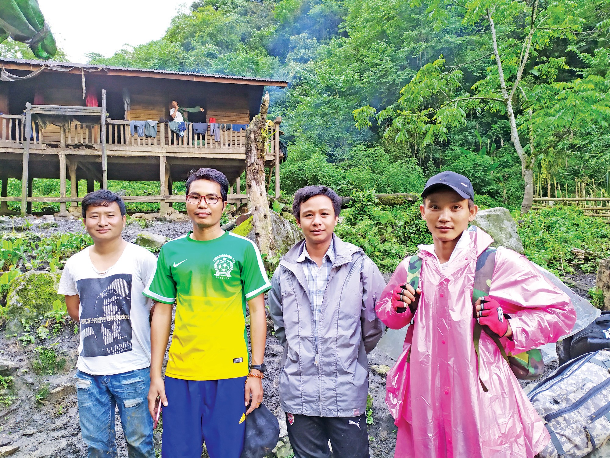 ခရီးပန်းလာကြပြီဖြစ်သော ကျွန်တော်တို့တစ်ဖွဲ့သားလုံး မိုးရေနှင့်ချွေးများရွှဲနစ်နေသည့် အင်္ကျီများကို ချွတ်ကြသည်။ ရေညှစ်ကြသည်။ အထုပ်များပါလာသော အခြားသူများသည် အဝတ်အစားလဲကြသည်။ ကျွန်တော့်မှာ တောင်ခြေတွင် လားနှင့်တင်ရန် အထုပ်ထားခဲ့၍ အဝတ်လဲ စရာမရှိဖြစ်နေသည်။ ဝတ်ထားသော ဘောင်းဘီမှာလည်း အောက်ပိုင်းတစ်ဝက်ရွှဲနေသည်။ သို့နှင့် အင်္ကျီခြောက်စေရန်အတွက် ဗိုလ်တဲအတွင်း မီးဖိုကြီးနားသွား၍ မီးကင်လေတော့၏။ မိုးကတဖြောက်ဖြောက် ရွာနေလို့လားမသိ အင်္ကျီက စို၍စိုမြဲသာ။