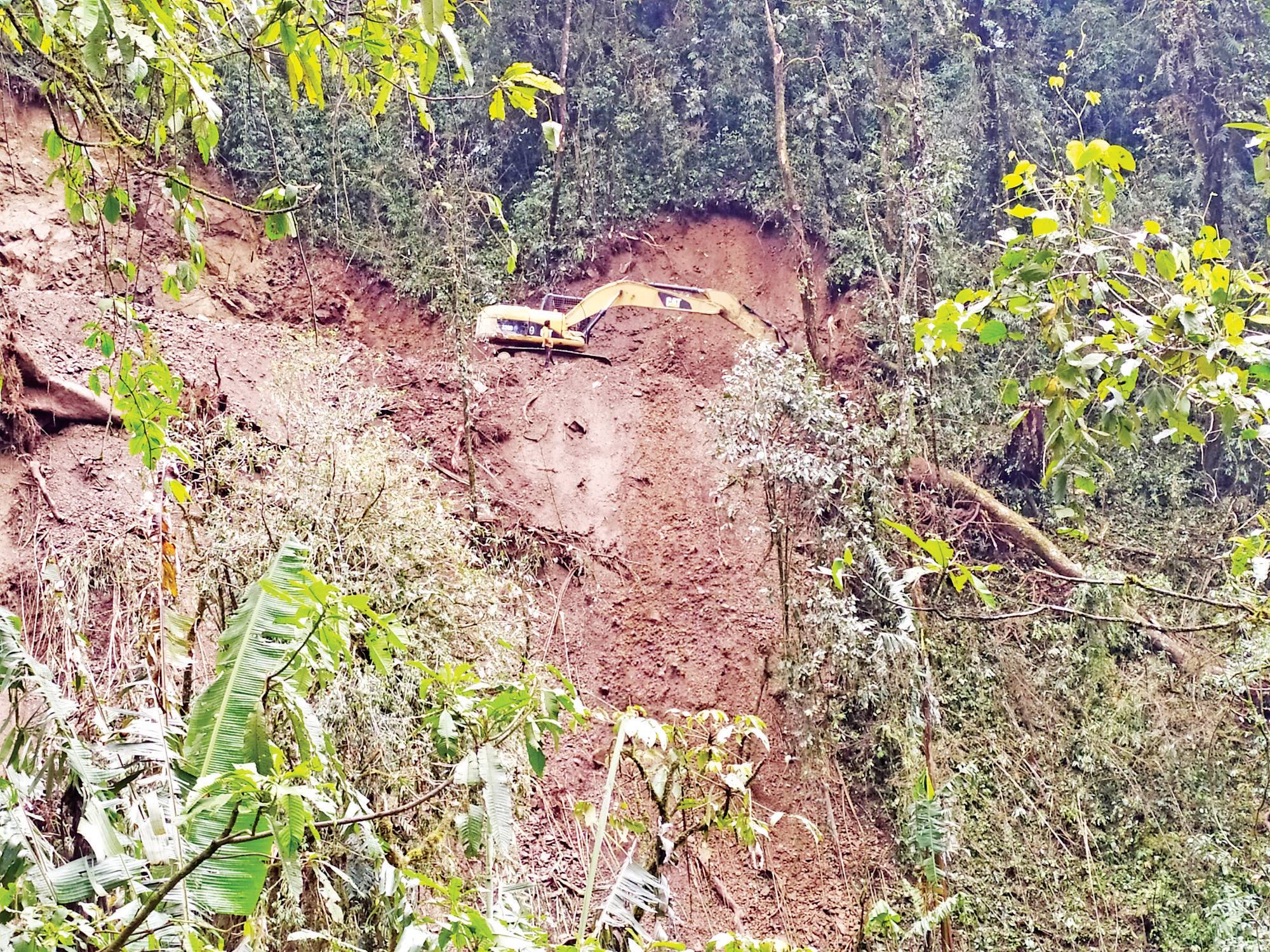 ထိုမှတစ်ဆင့် ဆန်းလွှတ်ချက်တောင်ထိပ်သို့ ဆက်လက်တက်ခဲ့ကြသည်။ ပေ ၄၀၀၀ လောက်အရောက်တွင် အေးလာသည်။ တောင်များတစ်ဝိုက်တွင် ဆီးနှင်းမြူများ ထူထပ်စွာကျဆင်းနေသည်။ ရှေ့မြင်ကွင်းကို သဲသဲကွဲကွဲ မတွေ့ရတော့။ အတော်လေးပင်သတိထားသွားနေရသည်။ ထိုအခိုက်" ဗြုတ်ဗြုတ် ဗြုံး ဗြောဗြော" ဟူသော အသံကြီးတစ်ခု ကြားလိုက်ရသည်။ နောက်ကိုပြန်လှည့်ကြည့်လိုက်တော့ ကျွန်တော်တို့ ဖြတ်လာသော တောင်တက်လမ်းပေါ်တွင် ကျောက်ဖြုန်းမြေစာပုံကြီးကို တွေ့လိုက်ရသည်။ လမ်းလျှောက်တက်လာသော ကျွန်တော်တို့အဖွဲ့နှင့် ကိုက် ၂၀၀ ခန့်သာဝေးသည်။ တောင်ပေါ်ကမြေစာပုံ ပြိုကျလာခြင်းဖြစ်သည်။ ကံကောင်းထောက်မစွာဖြင့် အသက်ဘေးမှ သီသီကလေး လွတ်မြောက်သွားခြင်းဖြစ်သည်။ ထိုတောင်သည် သက်တမ်းနုတောင်ဖြစ်၍ မြေများ၊ ကျောက်တုံးများ မကြာခဏပြိုကျလျက်ရှိသည်။ လမ်းမှာလည်းဖောက်လုပ်ဆဲ လမ်းဖြစ်သည်။