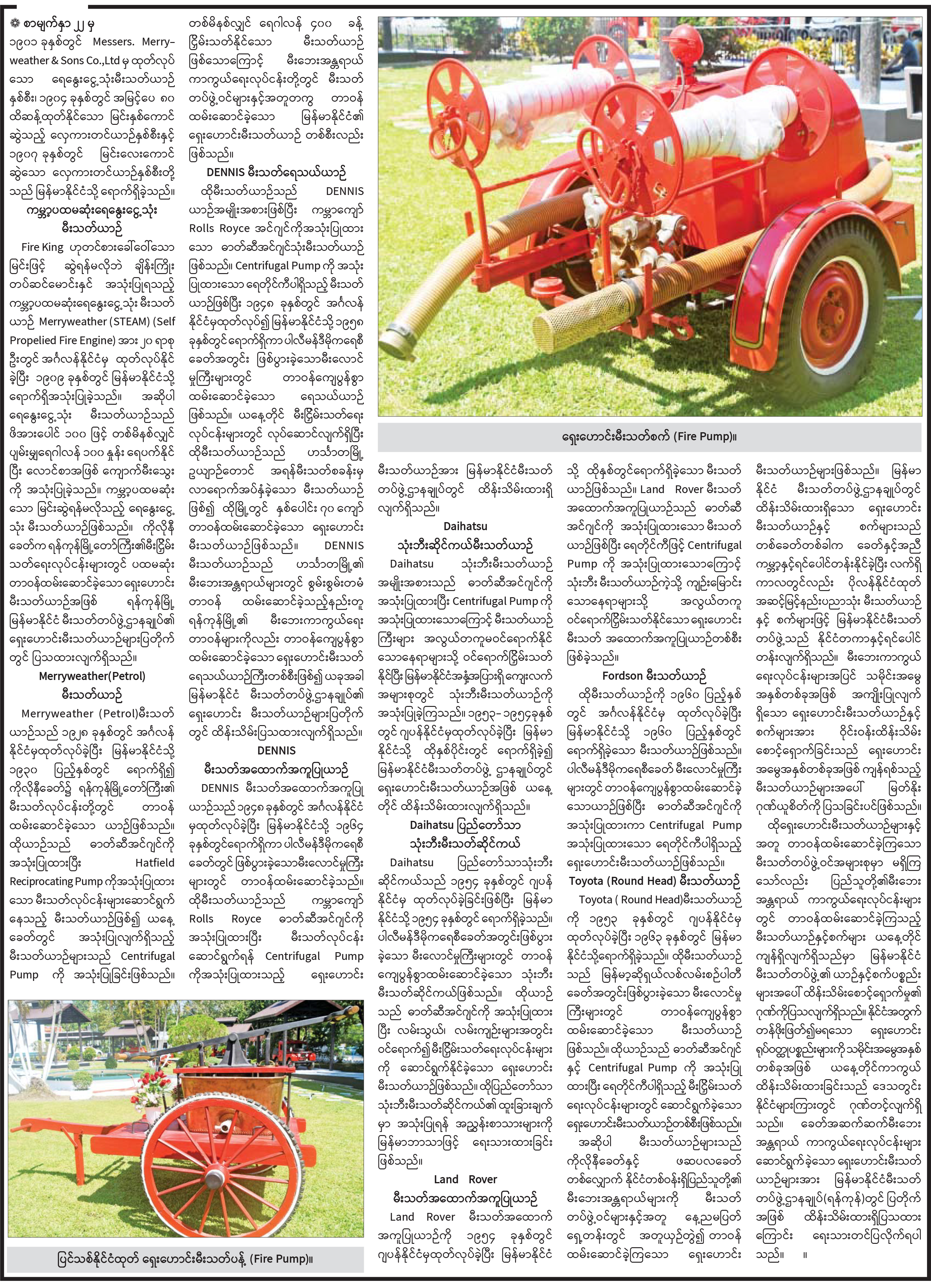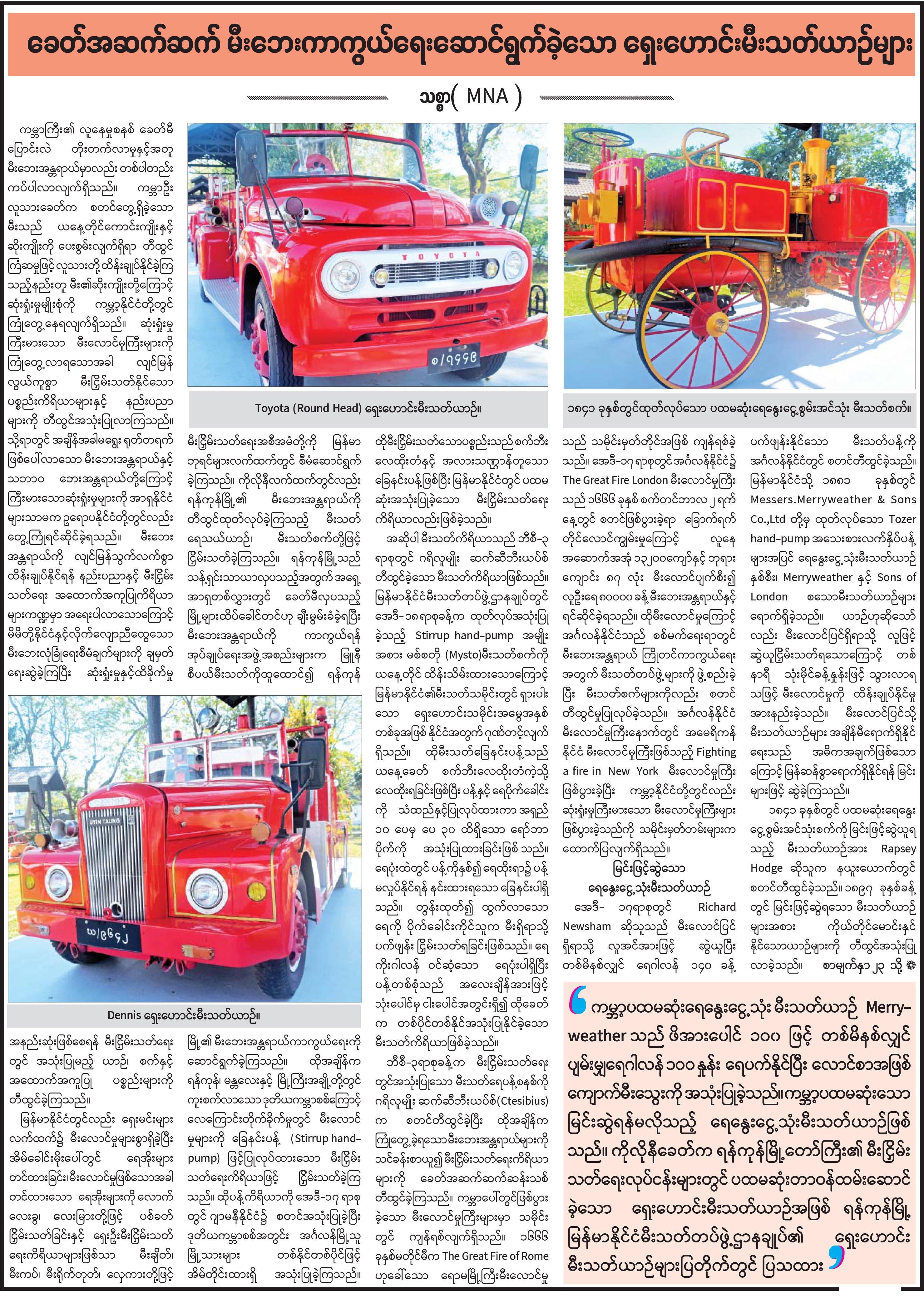 ခေတ်အဆက်ဆက် မီးဘေးကာကွယ်ရေးဆောင်ရွက်ခဲ့သော ရှေးဟောင်းမီးသတ်ယာဉ်များ