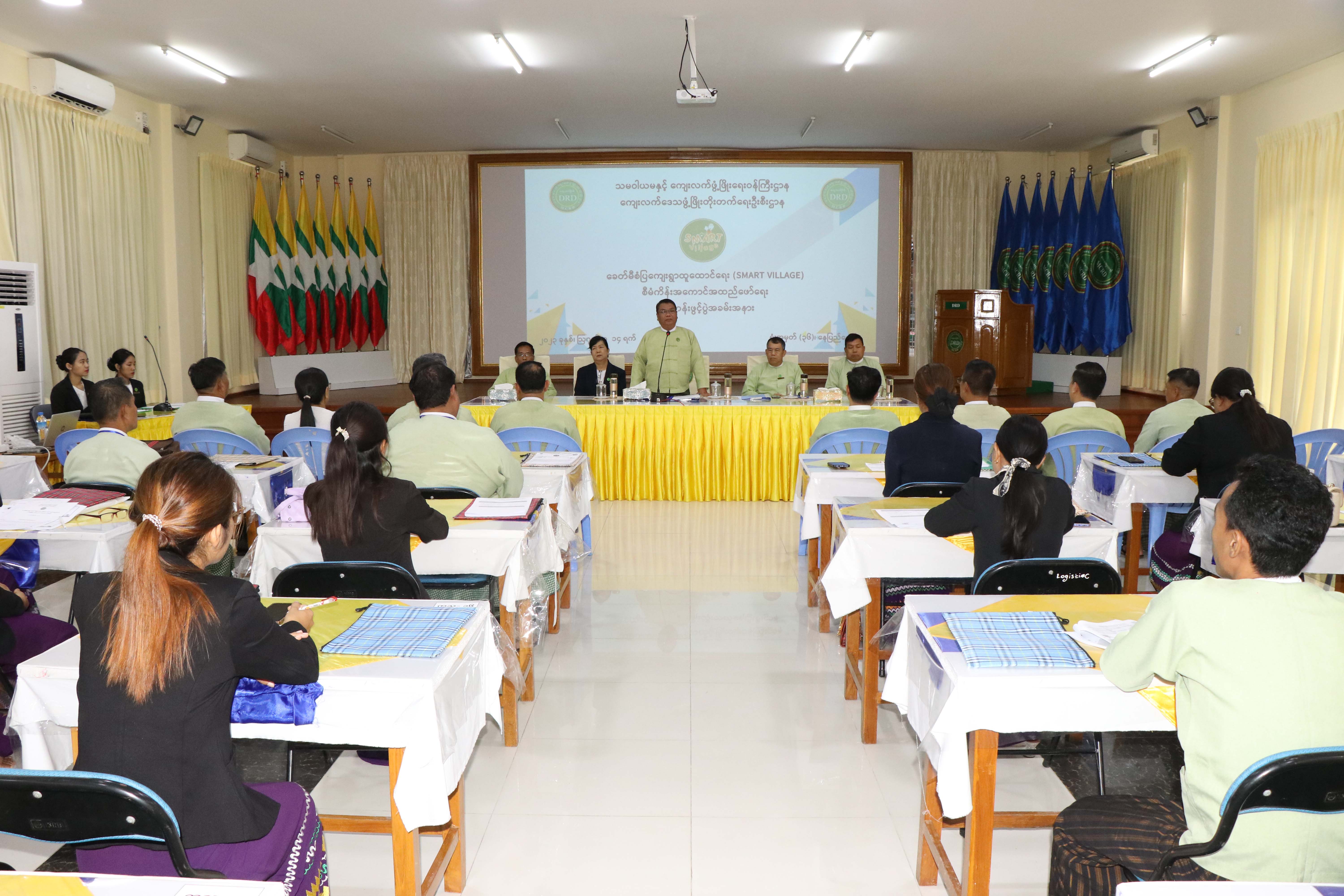 ဆက်လက်၍ ကျေးလက်ဒေသဖွံ့ဖြိုးတိုးတက်ရေးဦးစီးဌာန ဒုတိယညွှန်ကြားရေးမှူးချုပ် ဦးမျိုးနိုင်အောင်က ခေတ်မီစံပြကျေးရွာ ထူထောင်ရေးစီမံကိန်း မူဝါဒပိုင်းဆိုင်ရာများကို လည်းကောင်း၊ ညွှန်ကြားရေးမှူး ဒေါက်တာ ဇာနည်မင်းက ခေတ်မီစံပြကျေးရွာထူထောင်ရေးစီမံကိန်း အကြောင်းအရာများကို လည်းကောင်းဆွေးနွေး ပို့ချကြသည်။