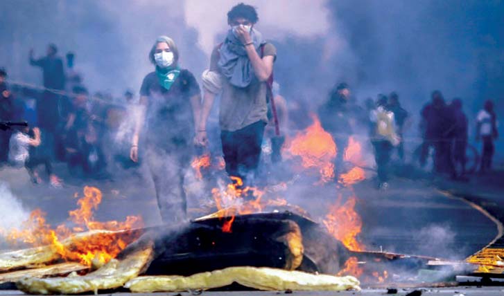 ရဲတပ်ဖွဲ့နှင့် ချီလီတပ်ဖွဲ့မှ တပ်ဖွဲ့ပေါင်း ၉၅၀ဝ ခန့်မှာ မျက်ရည်ယိုဗုံးများ အသုံးပြု၍ လည်းကောင်း၊ မီးသတ်ပိ်ုက်ကြီးများ အသုံးပြု၍လည်းကောင်း ဘတ်စ်ကားမျာကို မီးရှို့နေကြသည့် ဆန္ဒပြသူများကို ဖြိုခွင်းခဲ့ရသည်။ ဆန္ဒြုပသူများသည် ဘူတာရုံများကို မီးရှို့ခြင်း၊ ဆိုင်များအတွင်း မွှေနှောက်လုယူခြင်းတို့ ပြုလုပ်ခဲ့ကြသည်။