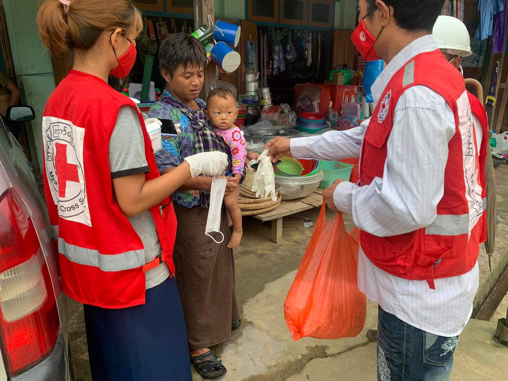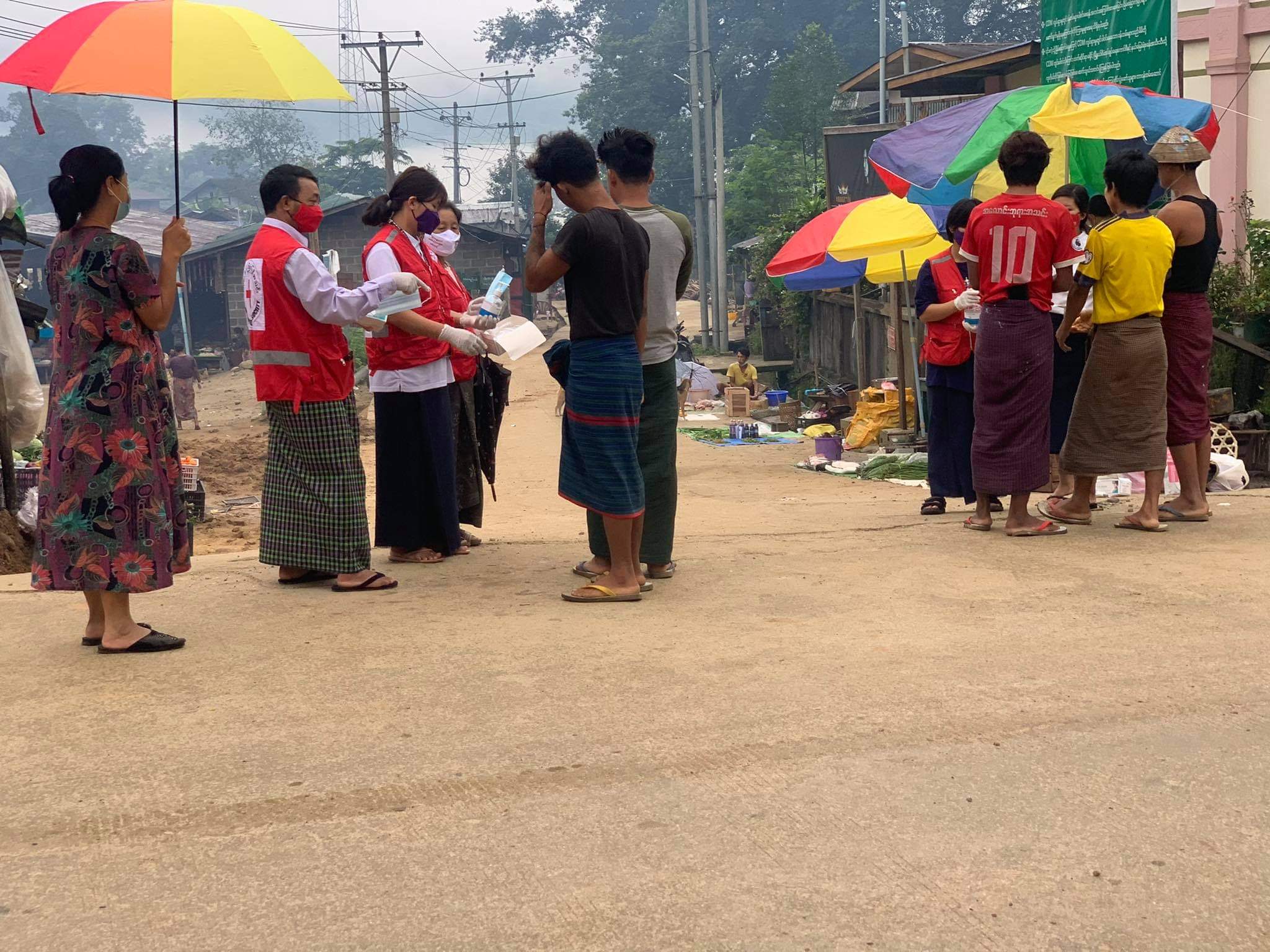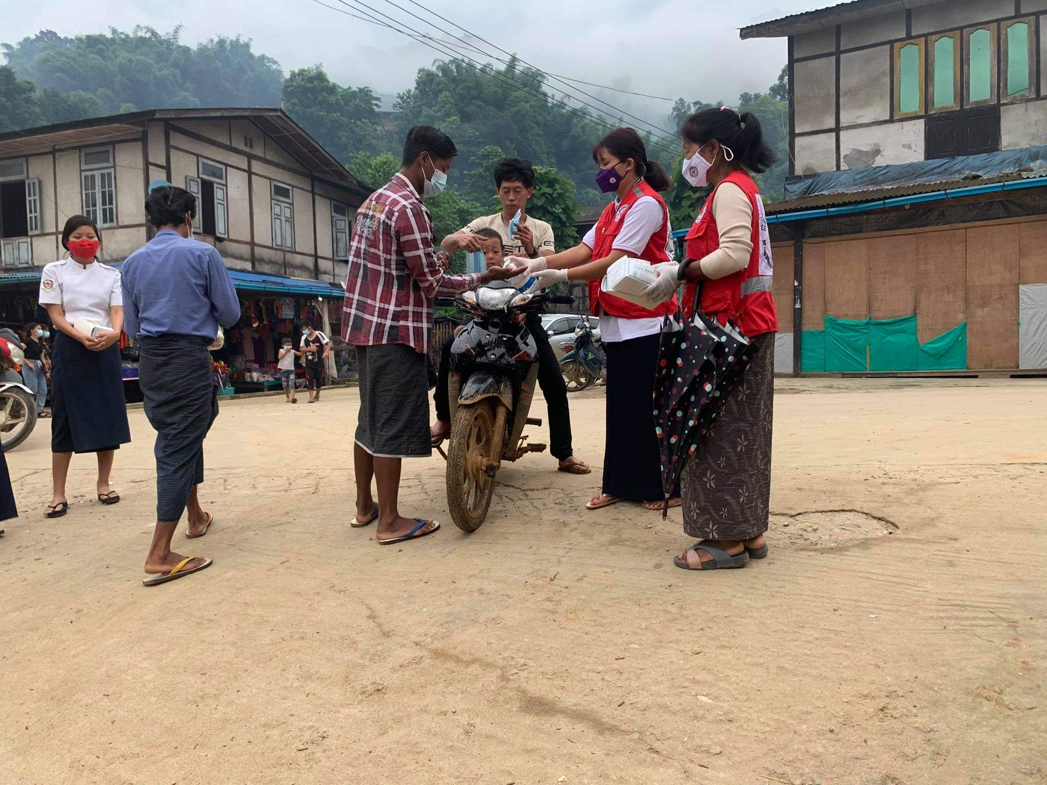 ထိုသို့ဆောင်ရွက်ရာတွင် မြို့နယ်ကြက်ခြေနီအသင်းခွဲဥက္ကဋ္ဌနှင့် တပ်ဖွဲ့ဝင်များက စည်ပင်သာယာစျေး၊ လမ်းဆုံ နေရာ၊ မြို့ပေါ်ရပ်ကွက် (၄)ရပ်ကွက်ရှိ လမ်းသွားလမ်းလာပြည်သူများ၊ ကုန်စုံဆိုင်များ၊ စားသောက်ဆိုင်များ၊ ထမင်းဆိုင်များ၊ မြို့အဝင်ကျန်းမာရေး စစ်ဆေးဂိတ်များတွင် လက်သန့်ဆေးရည် အသုံးပြုစေခြင်း၊ နှာခေါင်းစည်း များစနစ်တကျ တပ်ဆင်စေခြင်း၊ ကျန်းမာရေးနှင့် အားကစားဝန်ကြီးဌာန ထုတ်ပြန်ထားသည့် စည်းကမ်းချက် များကို တိတိကျကျ လိုက်နာဆောင်ရွက်ကြရန် အသိပညာပေးပြောကြားပြီး နှာခေါင်းစည်း(Mask) (၈၀၀)ခုနှင့် လက်အိတ် (၈၀၀) ကျော် အခမဲ့ဖြန့်ဝေပေးခဲ့ကြောင်း သိရသည်။