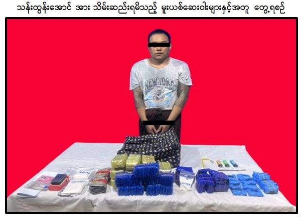 မန္တလေးတိုင်းဒေသကြီး ရဲတပ်ဖွဲ့မှ တပ်ဖွဲ့ဝင်များ ပါဝင်သော ပူးပေါင်းအဖွဲ့သည် ဩဂုတ် ၁၈ ရက် ညနေ ၆ နာရီခွဲတွင် ချမ်းအေးသာစံမြို့နယ်၊ အောင်နန်းရိပ်သာအရှေ့ရပ်ကွက်ရှိ သန်းထွန်းအောင် ၏ နေအိမ်ကို ဝင်ရောက်ရှာဖွေရာ စိတ်ကြွရူးသွပ် ဆေးပြား ၄၂,၇၀၅ ပြားနှင့် စိတ်ပြောင်းဆေးဝါးများဖြစ်သည့် Happy Water သုည ဒသမ ၁၂၆ ကီလို၊ ကက်တမင်း သုည ဒသမ ၀၂ ကီလို၊ အိုက်စ် သုည ဒသမ ၁၃၅ ကီလို ကိုလည်းကောင်း၊ ထို့ပြင်ပူးပေါင်းအဖွဲ့သည် ဩဂုတ် ၁၉ ရက် ညနေ ၆ နာရီခွဲတွင် တောင်ကြီးမြို့နယ်၊ ရွှေညောင်မြို့၊ တောင်လေးလုံးကျေးရွာအုပ်စု၊ တောင်လေးလုံးကျေးရွာအနီးတွင် ဇော်ဦး(ခ)သက်ဟိန်း မောင်းနှင်လာသည့် TOYOTA CALDINA အမျိုးအစား မော်တော်ယာဉ်ကို ရပ်တန့်စစ်ဆေးရှာဖွေရာ စိတ်ပြောင်းဆေးဝါးများ ဖြစ်သည့် ကက်တမင်း ၇ ဒသမ ၄ ကီလို၊ Happy Water ၁ ဒသမ ၄၉ ကီလို သိမ်းဆည်းရမိခဲ့သဖြင့် ၎င်းတို့အား မူးယစ်ဆေးဝါးနှင့် စိတ်ကိုပြောင်းလဲစေသော ဆေးဝါးများဆိုင်ရာ ဥပဒေအရ အရေးယူထားကြောင်း သတင်းရရှိသည်။