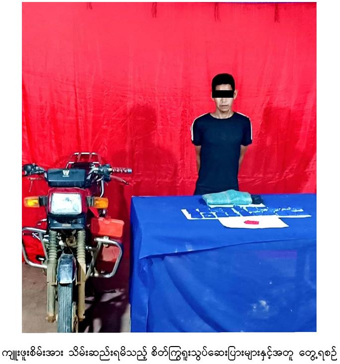 အလားတူ ဇွန် ၄ ရက် ည ၈ နာရီက မူးယစ်တပ်ဖွဲ့စု(၂၁) ကွမ်းလုံမှ တပ်ဖွဲ့ဝင်များ ပါဝင်သော ပူးပေါင်းအဖွဲ့သည် လောက်ကိုင်မြို့နယ်၊ ချင်းရွှေဟော်မြို့အဝင်၊ ရာဘာကုန်း ပူးပေါင်းစစ်ဆေးရေးဂိတ်တွင် ကျူးဖူးစိမ်းမောင်းနှင်လာသည့် မော်တော်ဆိုင်ကယ်အား ရပ်တန့်ရှာဖွေရာ စိတ်ကြွရူးသွပ်ဆေးပြား ၃၉၀ဝ ကိုလည်းကောင်း။