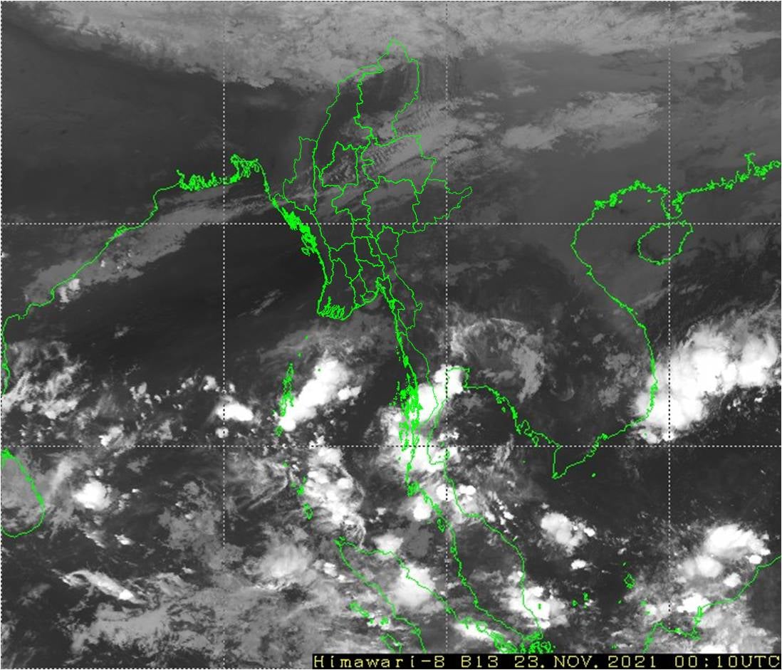 မိုးလေဝသနှင့်ဇလဗေဒညွှန်ကြားမှုဦးစီးဌာနက ယနေ့ နံနက် ၇ နာရီထုတ်ပြန်သည့် မိုးလေဝသ သတင်းအရ ကပ္ပလီပင်လယ်ပြင်နှင့် ဘင်္ဂလားပင်လယ်အော်တောင်ပိုင်းတို့တွင် တိမ်အသင့်အတင့် ဖြစ်ထွန်းနေပြီး၊ ကျန်ဘင်္ဂလားပင်လယ်အော်တွင် တိမ်အနည်းငယ် ဖြစ်ထွန်းနေသည်။