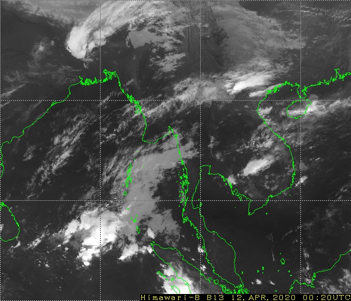 မိုးလေဝသနှင့်ဇလဗေဒညွှန်ကြားမှုဦးစီးဌာနမှ ဧပြီ ၁၂ ရက် နံနက် ၇ နာရီအချိန်တွင် နေ့စဉ်မိုးလေဝသသတင်း ထုတ်ပြန်ရာ ဘင်္ဂလားပင်လယ်အော်အခြေအနေမှာ ဘင်္ဂလားပင်လယ်အော်မြောက်ပိုင်းတွင် တိမ်အနည်းငယ် ဖြစ်ထွန်းနေပြီး၊ ကပ္ပလီပင်လယ်ပြင်နှင့် ကျန်ဘင်္ဂလားပင်လယ်အော်တို့တွင် တိမ်အသင့်အတင့် ဖြစ်ထွန်းနေပါသည်။